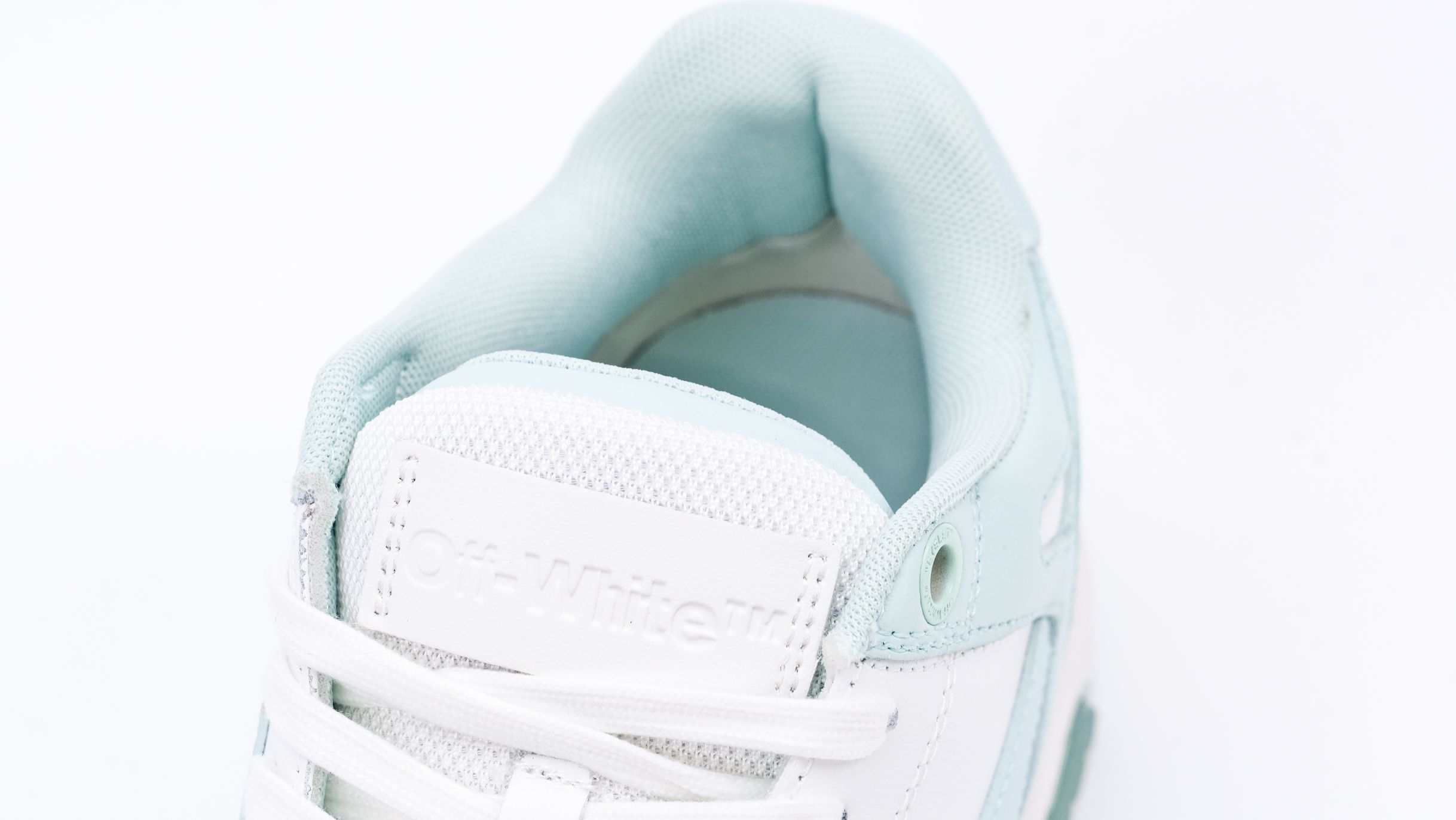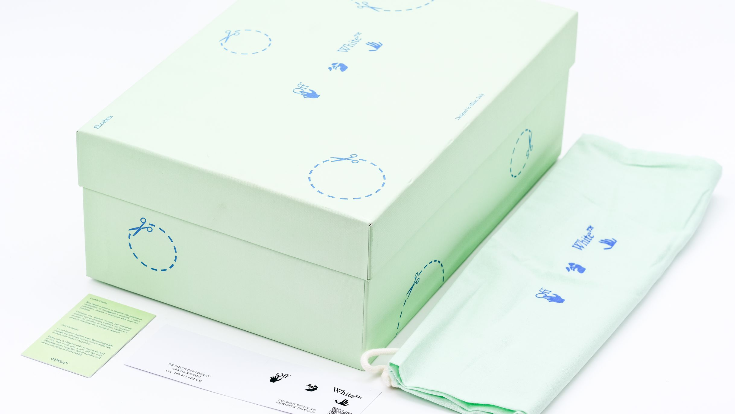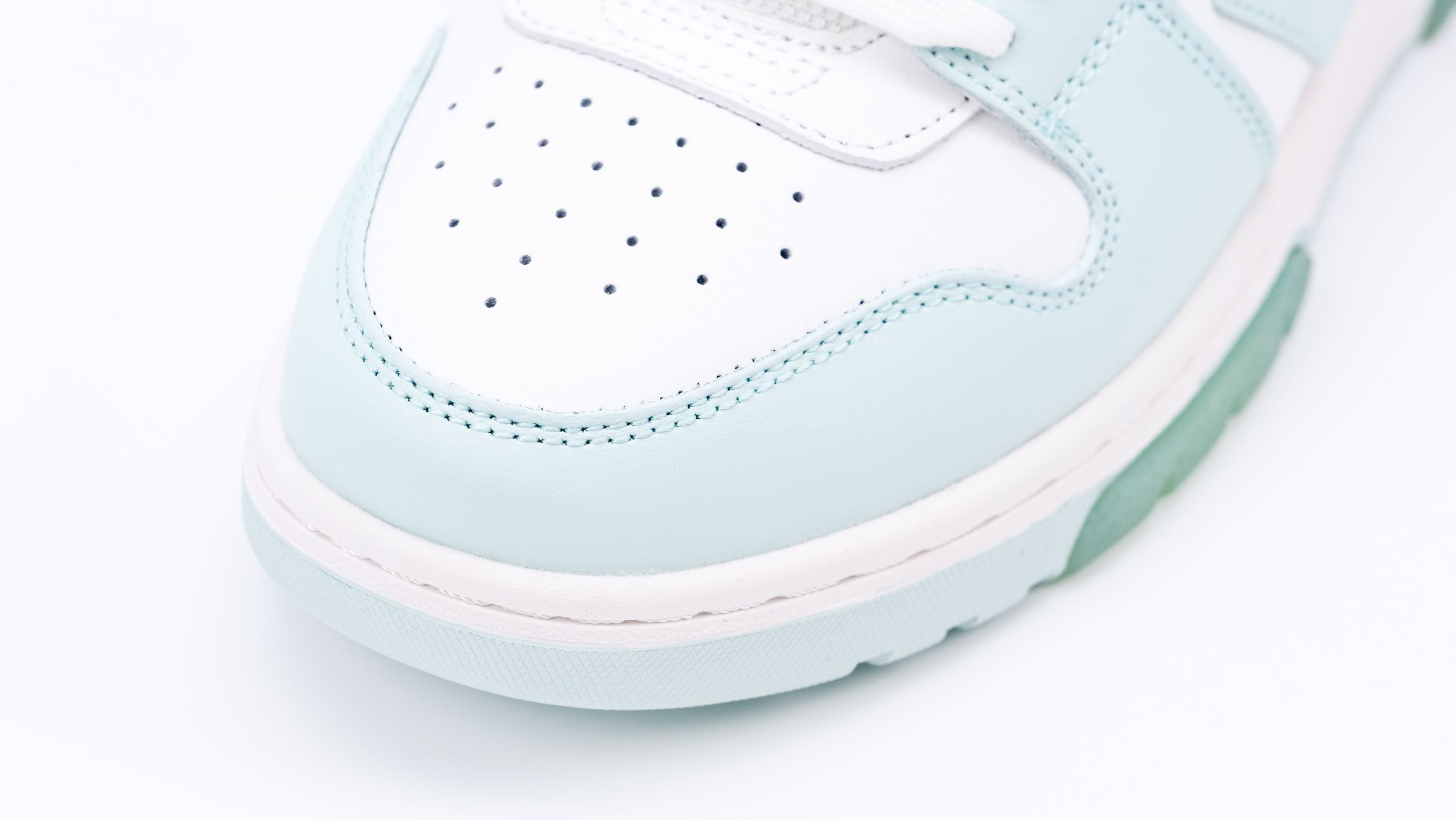 OFF-WHITE featuring white, mint green, leather, colour-block panelled design, branded insole, round toe, flat rubber sole, front lace-up fastening and signature Zip Tie tag.