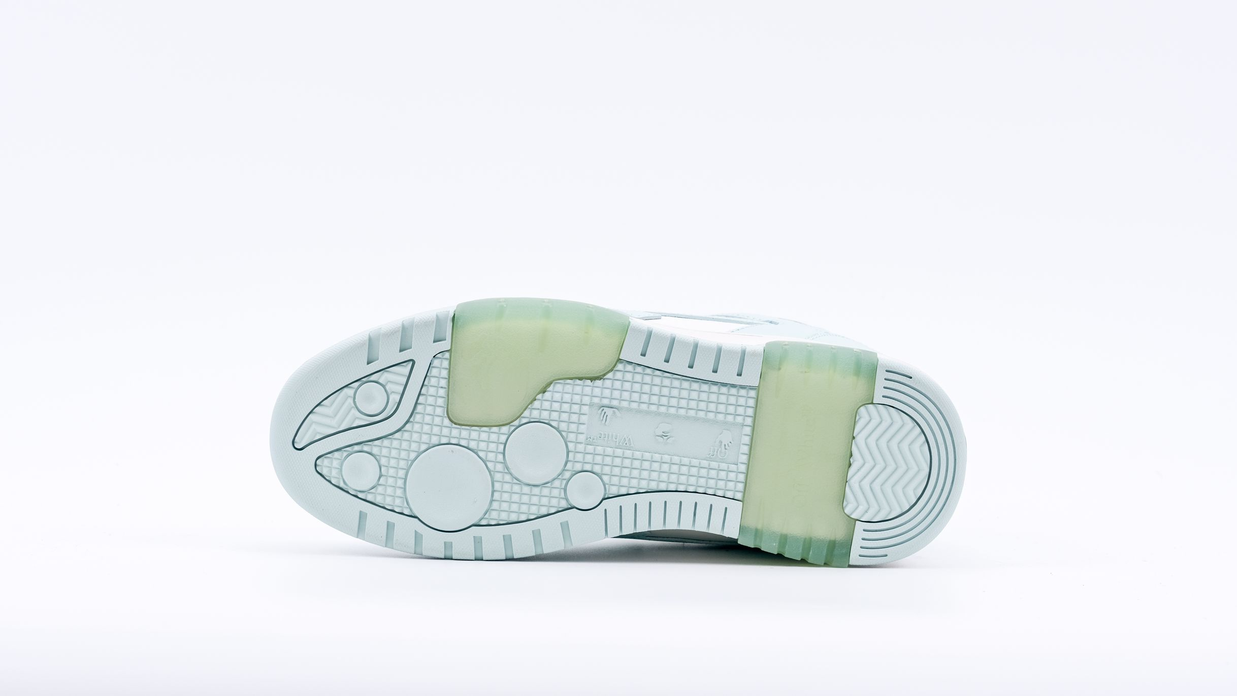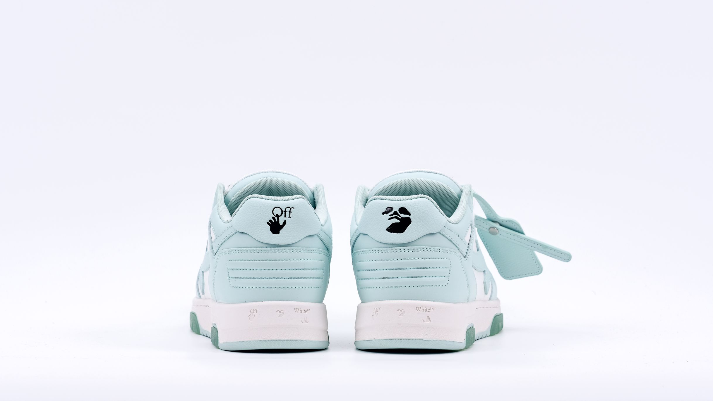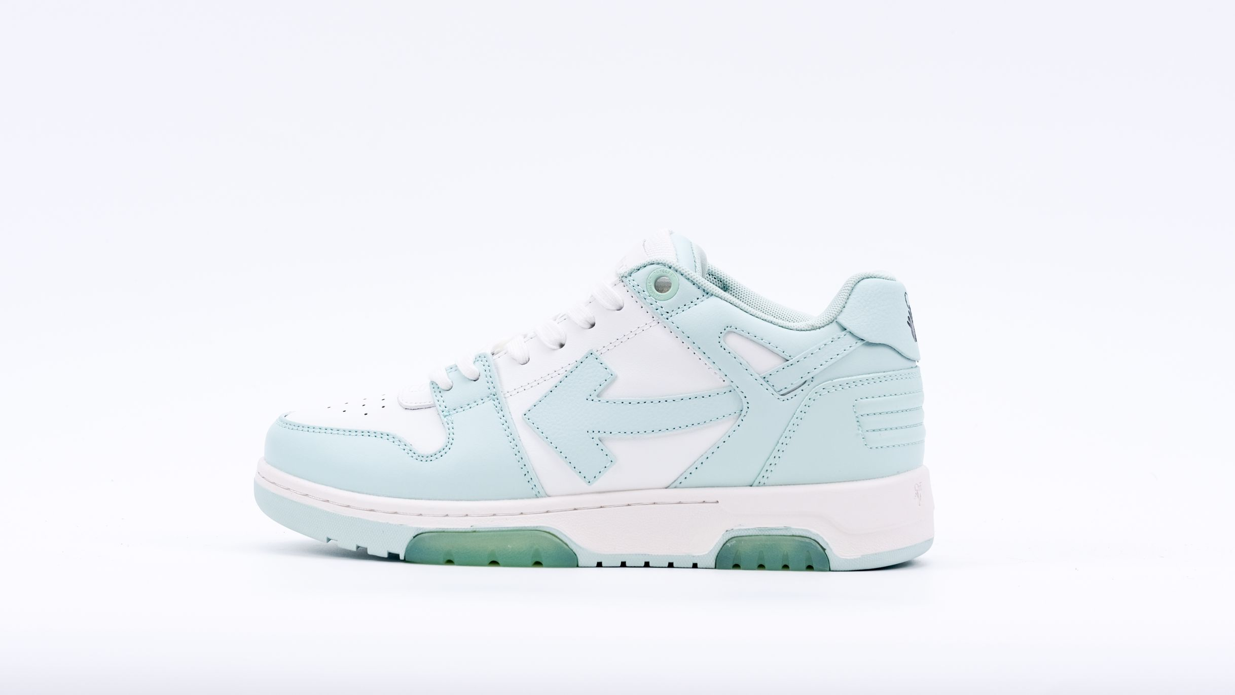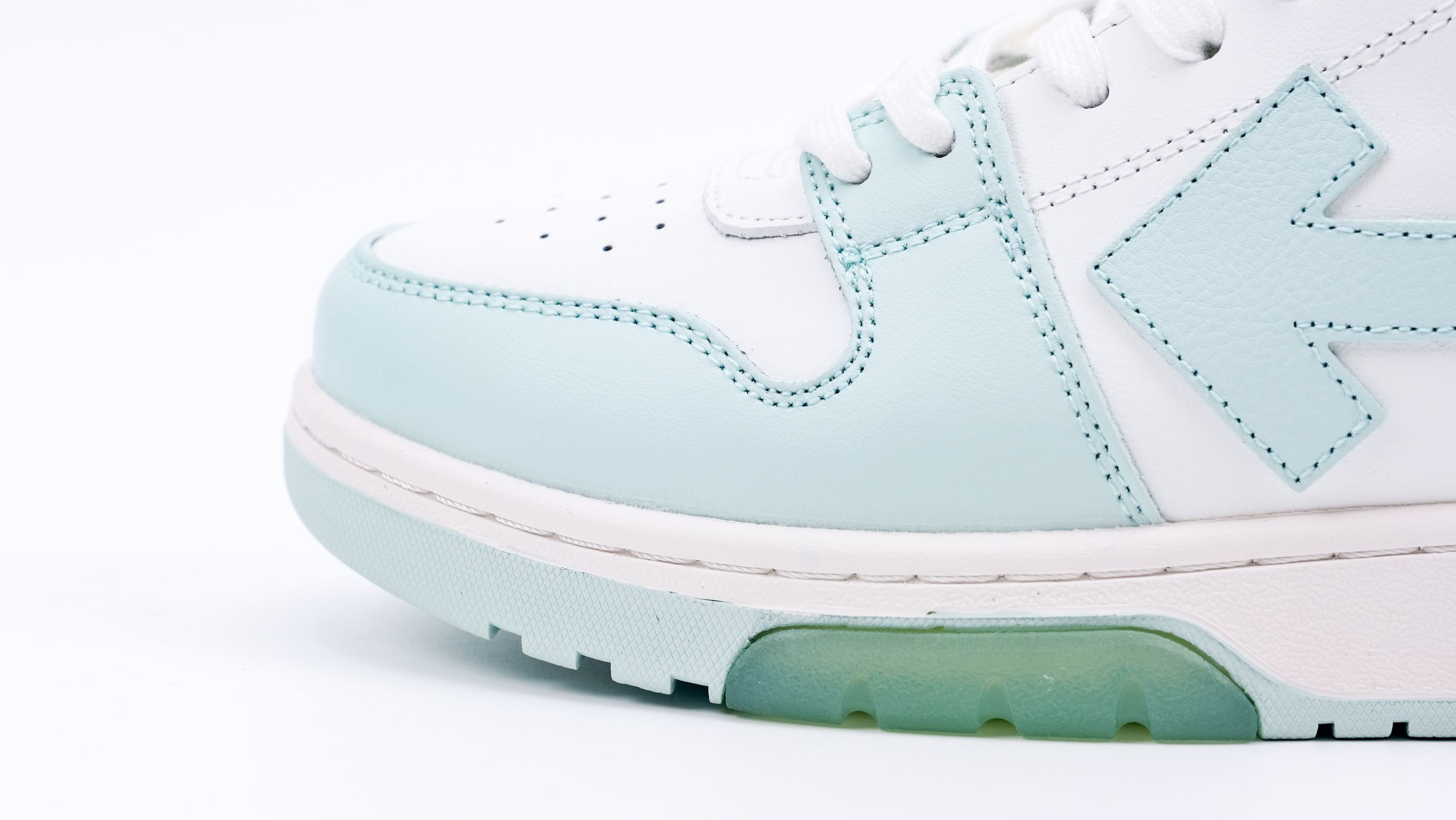 OFF-WHITE featuring white, mint green, leather, colour-block panelled design, branded insole, round toe, flat rubber sole, front lace-up fastening and signature Zip Tie tag.