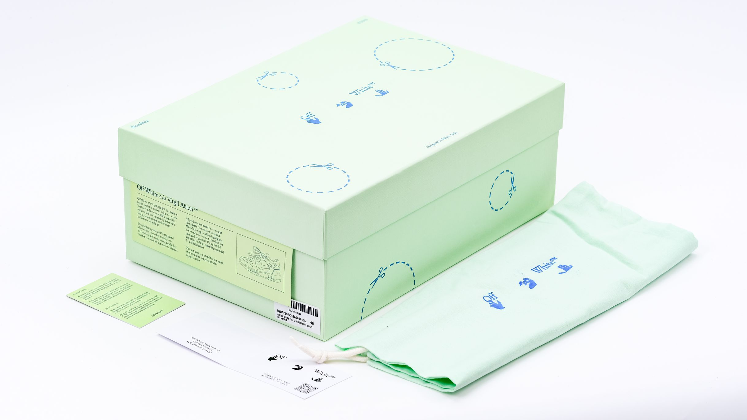 The silhouette of the shoe is a reinterpretation of classic tennis sneakers, incorporating a slightly chunky, yet streamlined sole that adds to the contemporary feel of the sneaker. This model also includes the iconic details that Off-White is known for, such as the red zip-tie, the quoted “SHOELACES”, and the arrows logo subtly placed on the side of the sneaker. These elements not only enhance the visual appeal but also signify the sneaker’s authenticity and connection to the Off-White brand.