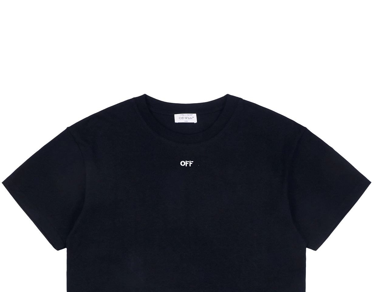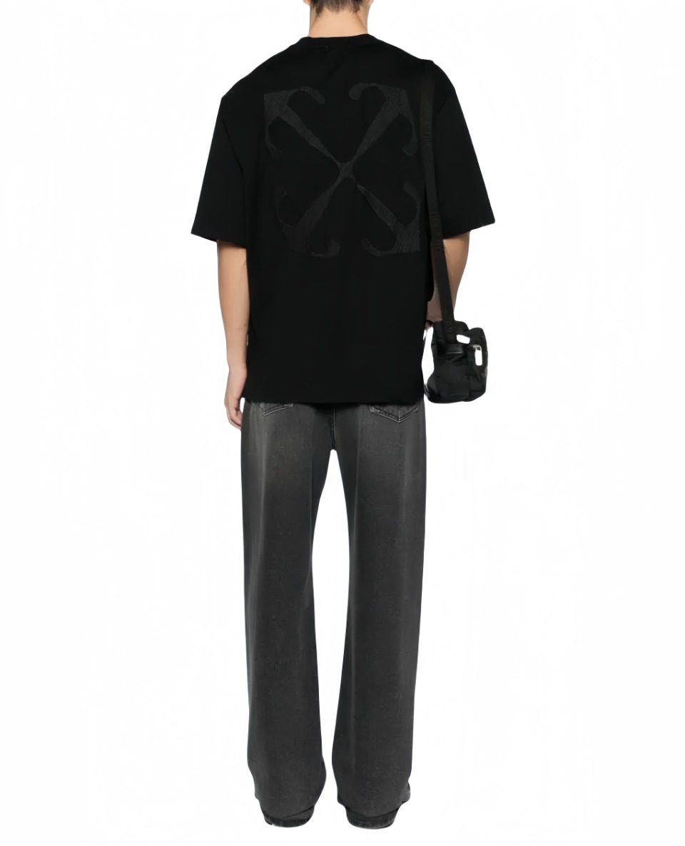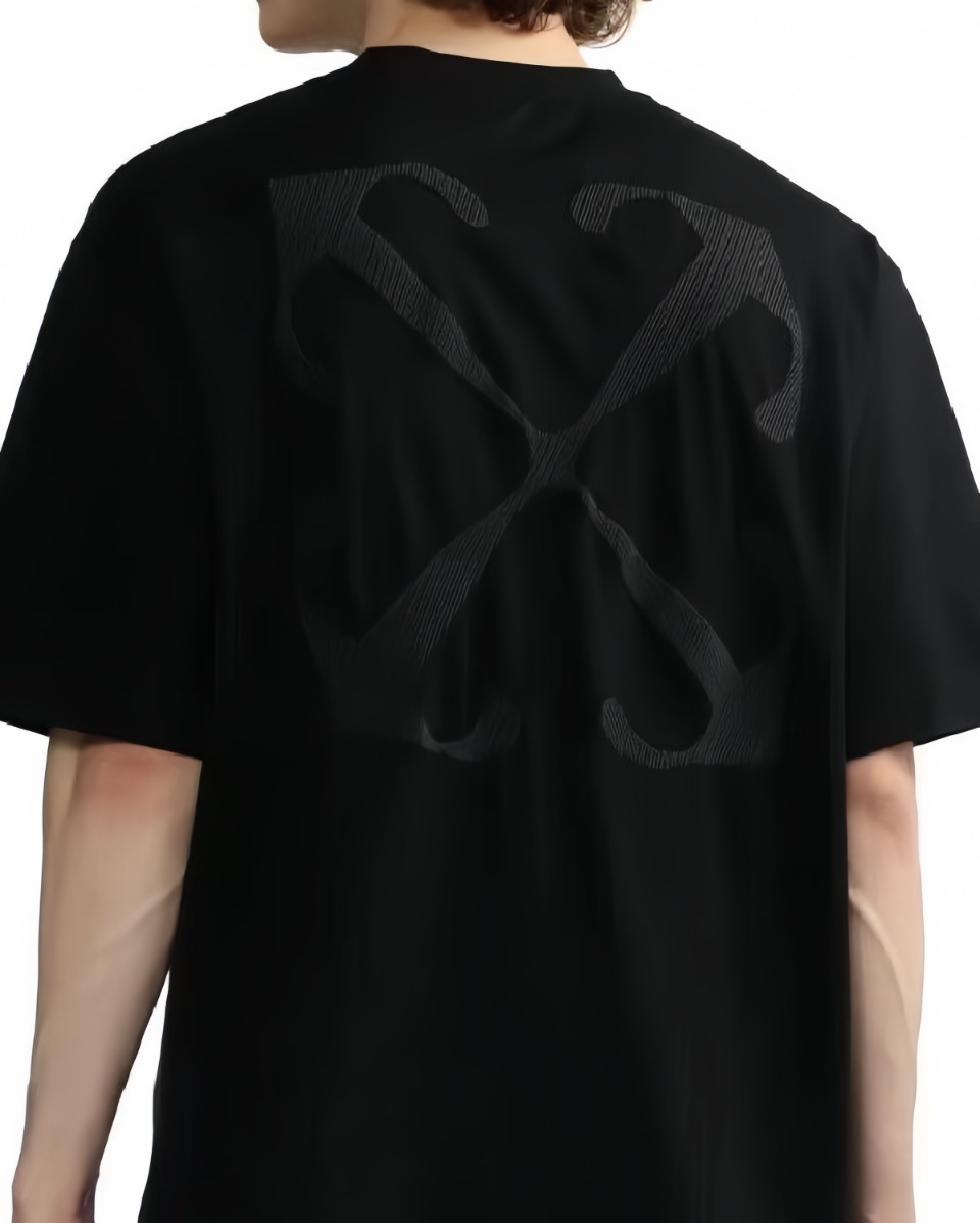 This OFF-WHITE short-sleeve T-shirt features a subtle textured pattern, combined with signature Arrows logo and embroidered anchor detailing, creating a sophisticated and layered streetwear aesthetic. Crafted from premium cotton fabric, it ensures a soft, breathable, and comfortable fit. The standard fit and classic crewneck design provide a versatile and effortlessly stylish look, making it perfect for both casual and statement outfits. Whether worn alone with jeans or layered under a jacket, this T-shirt embodies OFF-WHITE’s signature fusion of luxury, deconstructed design, and contemporary streetwear.