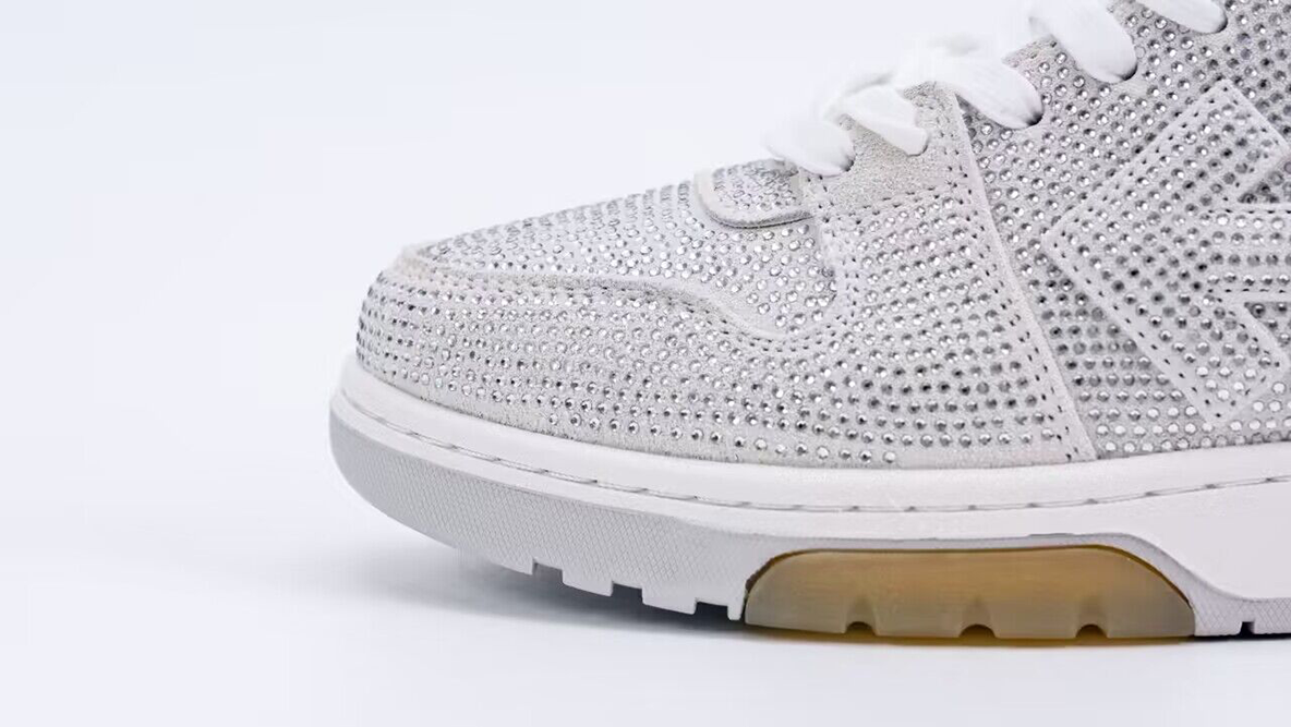 This model is particularly appealing to those who appreciate luxury fashion and statement footwear. The combination of classic sneaker comfort with extraordinary detailing reflects Virgil Abloh’s philosophy of merging streetwear with high fashion, making the Off-White Wmns Out Of Office ‘White Strass’ a coveted item for sneaker enthusiasts and fashion-forward individuals alike. Whether worn as a focal point of an ensemble or as a complement to a sophisticated look, these sneakers offer both standout style and practicality.