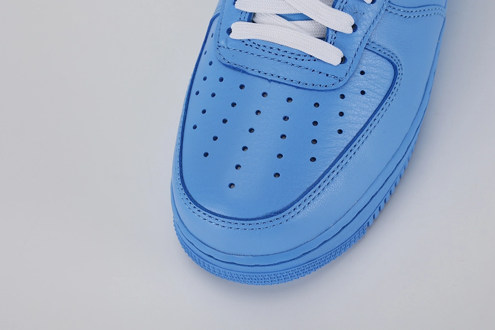 The Off-White x Air Force 1 Low ’07 ‘MCA’ is a striking masterpiece from the collaboration between Nike and Virgil Abloh’s Off-White, celebrating contemporary art and street culture. This special edition was released in conjunction with Abloh’s exhibit at the Museum of Contemporary Art in Chicago, making it not just a sneaker but a piece of wearable art. The ‘MCA’ colorway features a vivid blue that commands attention, paired with metallic silver Swooshes and the signature details that Off-White is celebrated for, including the red zip tie and the quotation marks around “AIR” on the midsole.