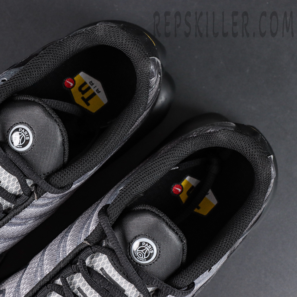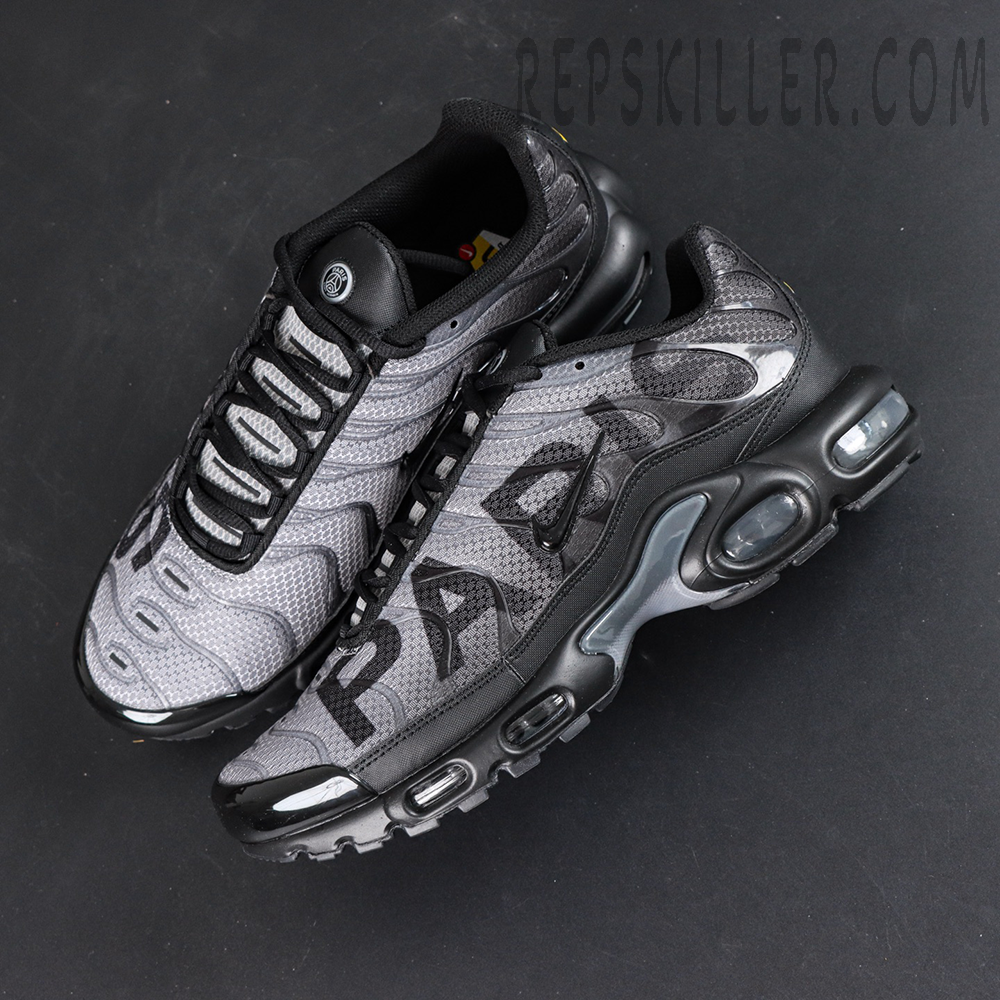 Perfect for collectors, PSG supporters, and sneaker enthusiasts seeking best reps sneakers, the Paris Saint-Germain x Nike Air Max Plus ‘Black Particle Grey’ stands as a premium option in the world of top-tier replica sneakers, combining luxury football heritage with aggressive Air Max energy.