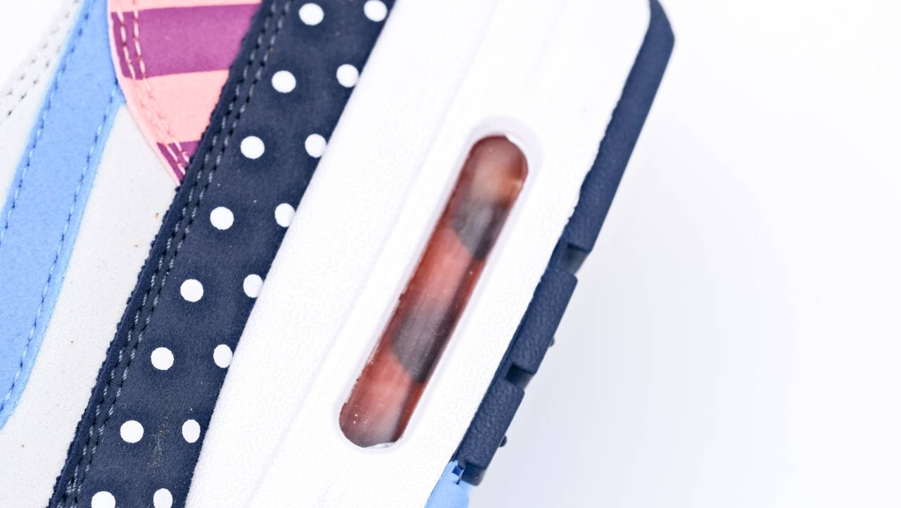 One of the most notable features of the Parra x Air Max 1 is the mismatched, multi-patterned design on the interior lining, which adds an element of surprise and delights those who appreciate artistic details. The vibrant colors and intricate patterns are balanced by a clean, white midsole that houses the visible Air-Sole unit—a hallmark of the Air Max 1 model that provides excellent cushioning and impact absorption.