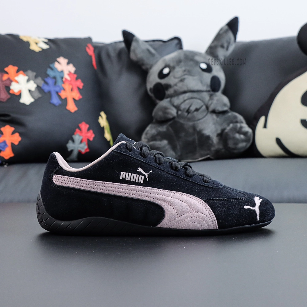 Puma Speedcat OG Sneakers Black Pink,its uppers are made of premium suede to ensure comfort and fit. Its low-cut shape combined with the front strap design ensures a stable and comfortable fit. The shoe soles are made of high quality rubber material, offering exceptional grip and durability, perfect for everyday wear needs. The side of the shoe is decorated with PUMA’s iconic Formstrip design, while the tongue is also printed with the brand logo, highlighting the classic brand style.