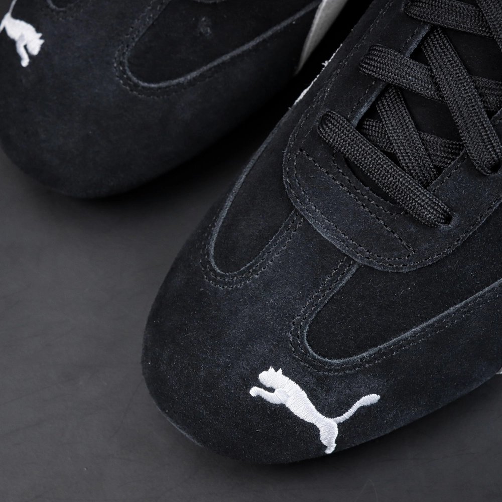 Puma Speedcat OG Sneakers Black/White,its uppers are made of premium suede to ensure comfort and fit. Its low-cut shape combined with the front strap design ensures a stable and comfortable fit. The shoe soles are made of high quality rubber material, offering exceptional grip and durability, perfect for everyday wear needs. The side of the shoe is decorated with PUMA’s iconic Formstrip design, while the tongue is also printed with the brand logo, highlighting the classic brand style.