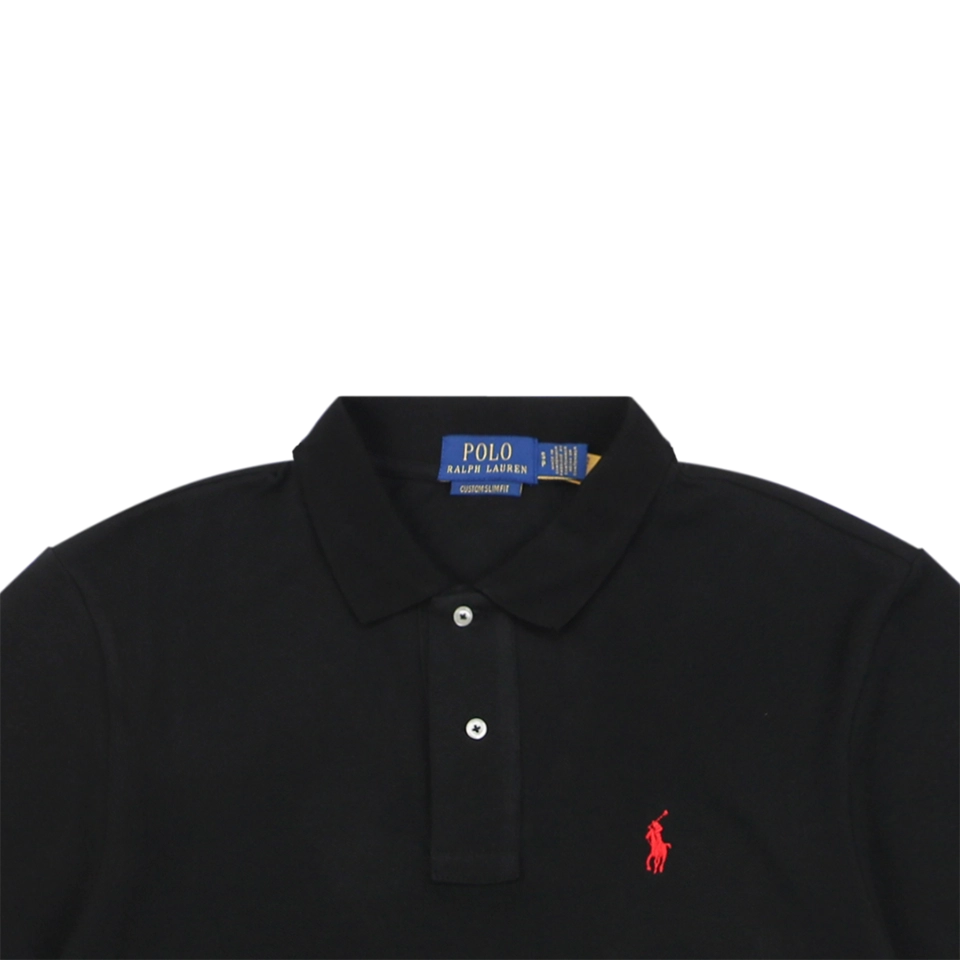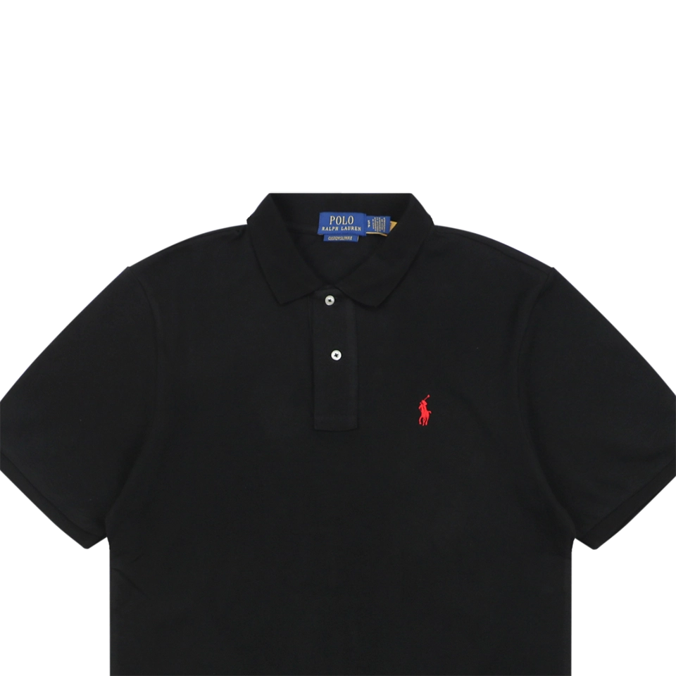 Crafted from breathable cotton piqué, this Ralph Lauren Embroidered Pony Logo Polo T-shirt showcases the iconic red pony logo embroidery at the chest. Designed with a classic polo collar and two-button placket, it combines timeless preppy elegance with everyday comfort. The sleek black tone offers versatility, making it easy to pair with both casual and semi-formal outfits.