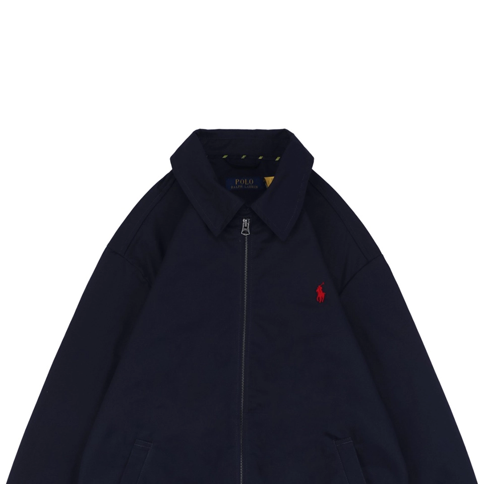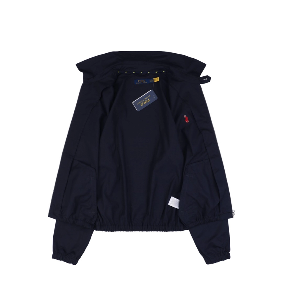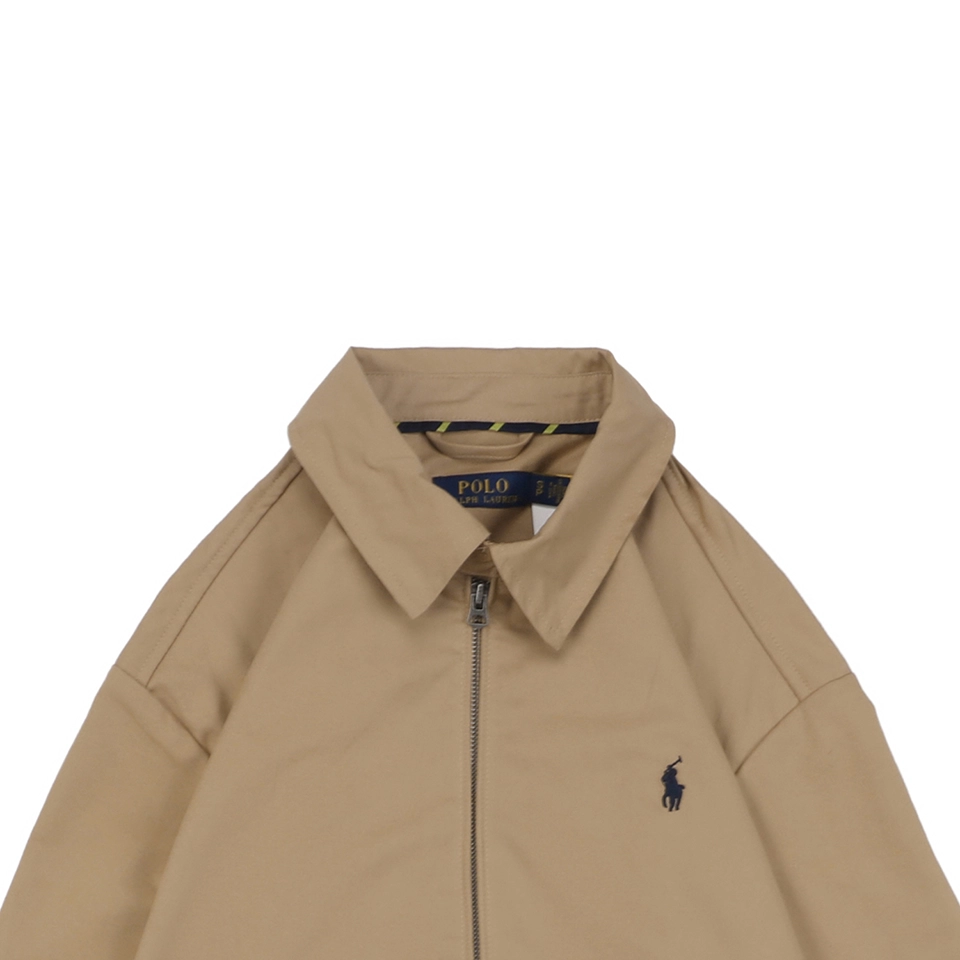 The Ralph Lauren Pony Logo Zip-Up Jacket offers a timeless casual outerwear option crafted from durable cotton-blend fabric. Designed with a relaxed fit, it features a full front zip, elastic hem and cuffs for a secure fit, and practical side pockets. The chest is embroidered with the iconic pony logo in contrast stitching, available in beige with navy embroidery or navy with red embroidery. A versatile piece that blends classic prep style with everyday comfort.