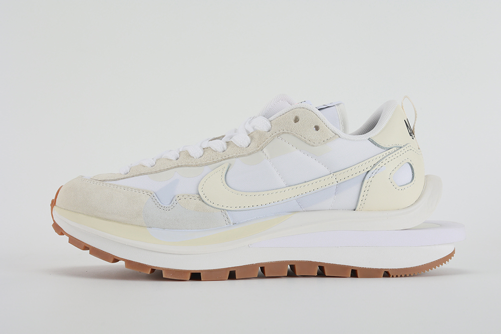 This collaboration builds upon the legacy of the Nike Waffle racing shoes, reimagined through Sacai’s lens of deconstruction and hybridization. The VaporWaffle ‘Sail Gum’ stands out with its layered appearance, showcasing doubled-up details such as the Swoosh, laces, and tongues, which add depth and texture to the sneaker’s design. This approach not only reflects Sacai’s signature aesthetic but also creates a visually striking piece that challenges traditional sneaker silhouettes.