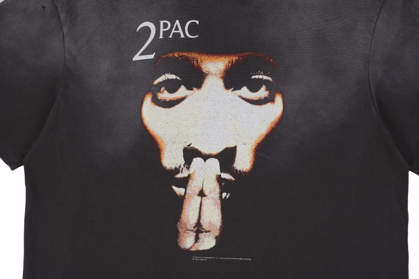 The Saint Michael 2PAC Portrait Graphic T-shirt pays tribute to hip-hop icon Tupac Shakur through a raw, emotionally charged vintage-style portrait print. With distressed textures and faded tones, the tee captures the rebellious spirit and enduring legacy of 2PAC, filtered through Saint Michael’s signature lens of streetwear fused with spiritual reflection. Crafted from soft, washed cotton in a relaxed cut, it’s a wearable homage to music, struggle, and cultural impact.