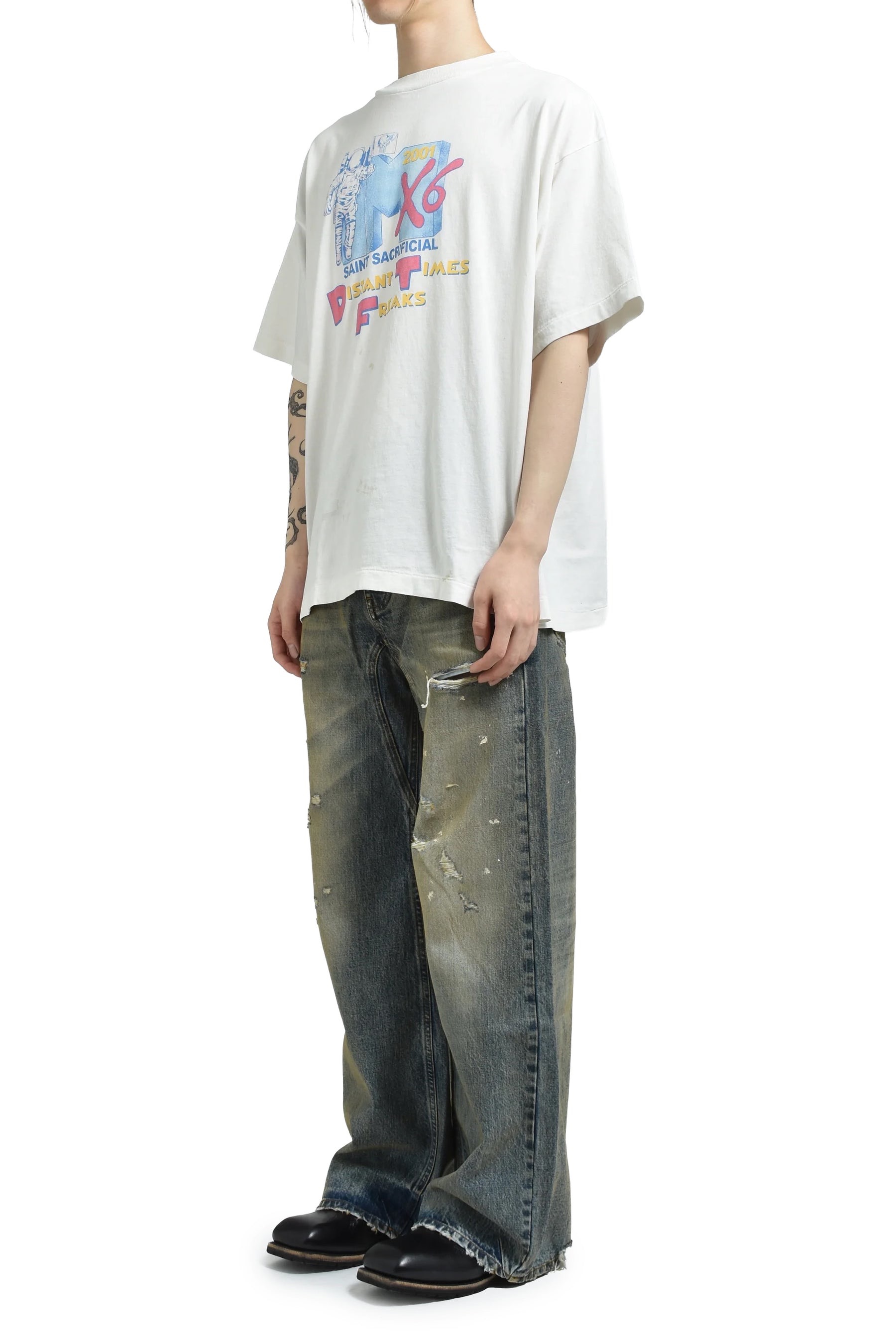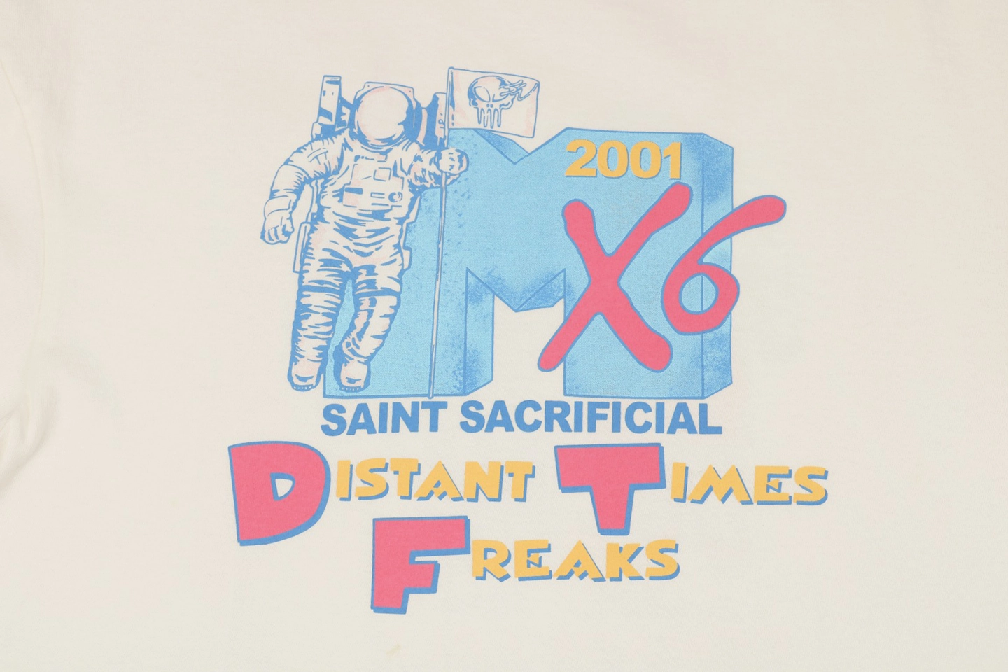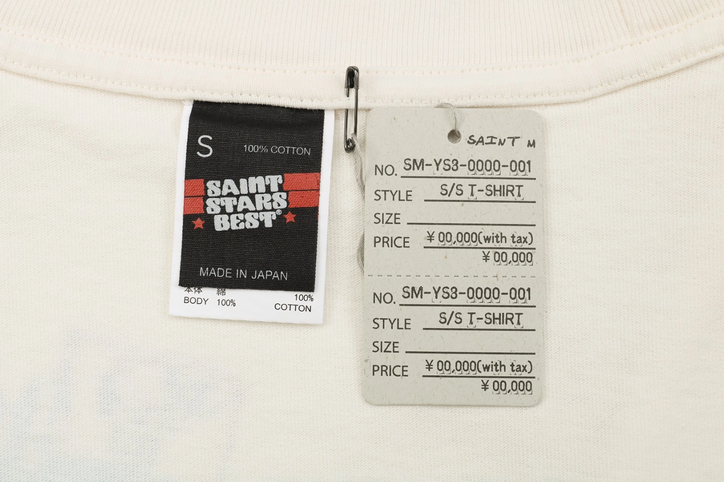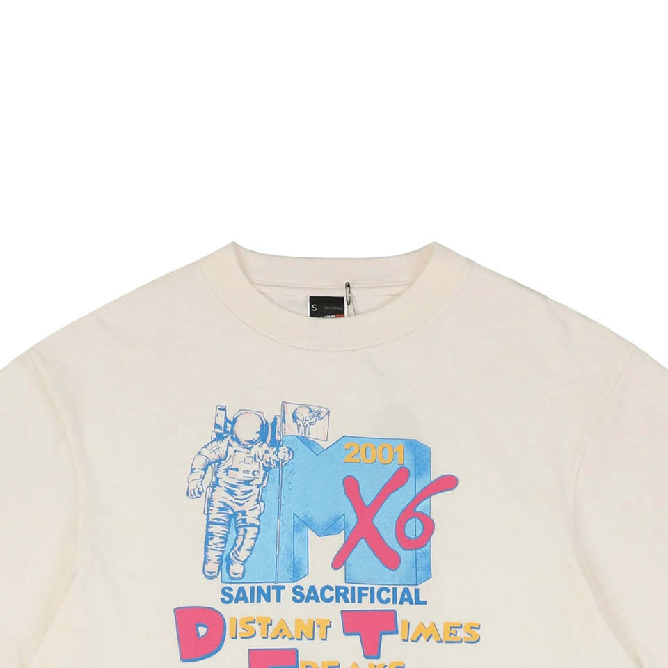 The Saint Michael Astronaut Stain Effect Graphic T-shirt explores themes of isolation and decay through a distressed astronaut print combined with grunge-style stain graphics. Symbolizing spiritual exile or cosmic solitude, the design aligns with Saint Michael’s raw, emotionally charged aesthetic. Crafted from washed cotton in a relaxed silhouette, it’s a statement piece that fuses celestial imagery with earthly imperfection.