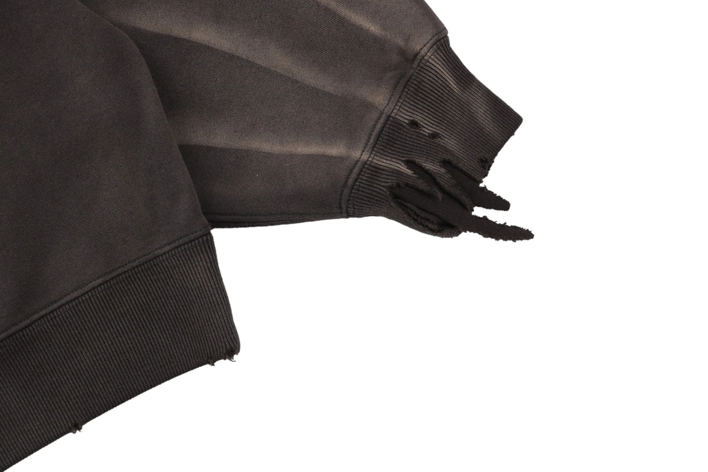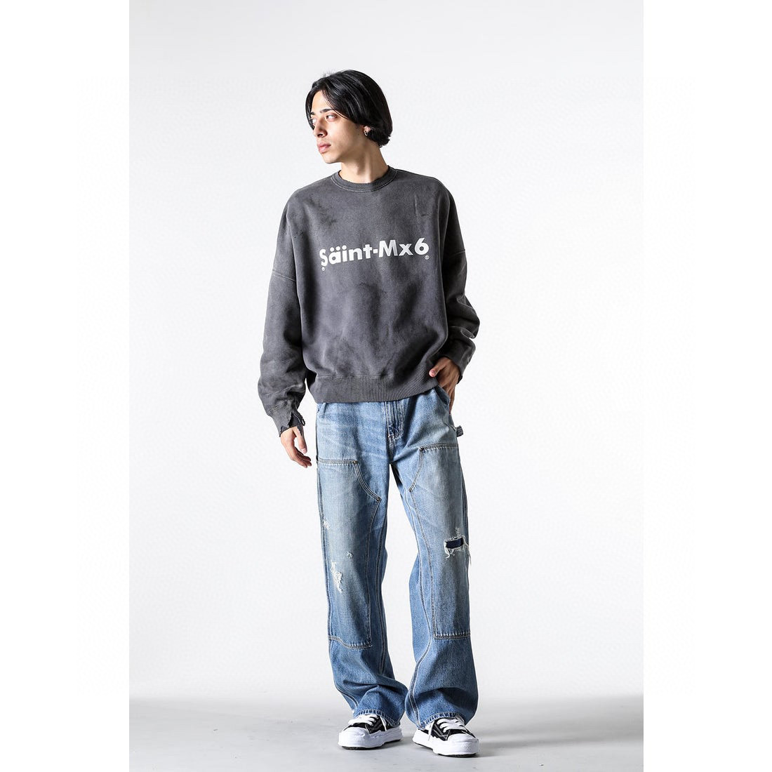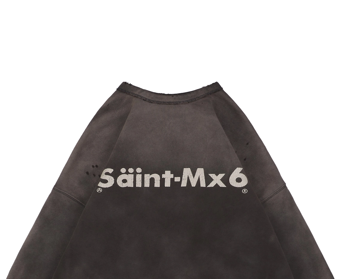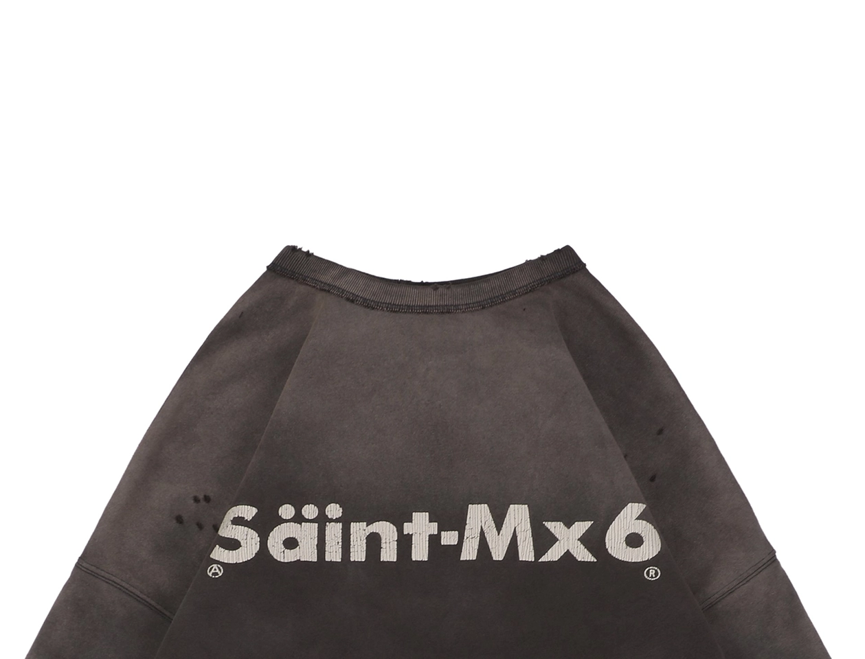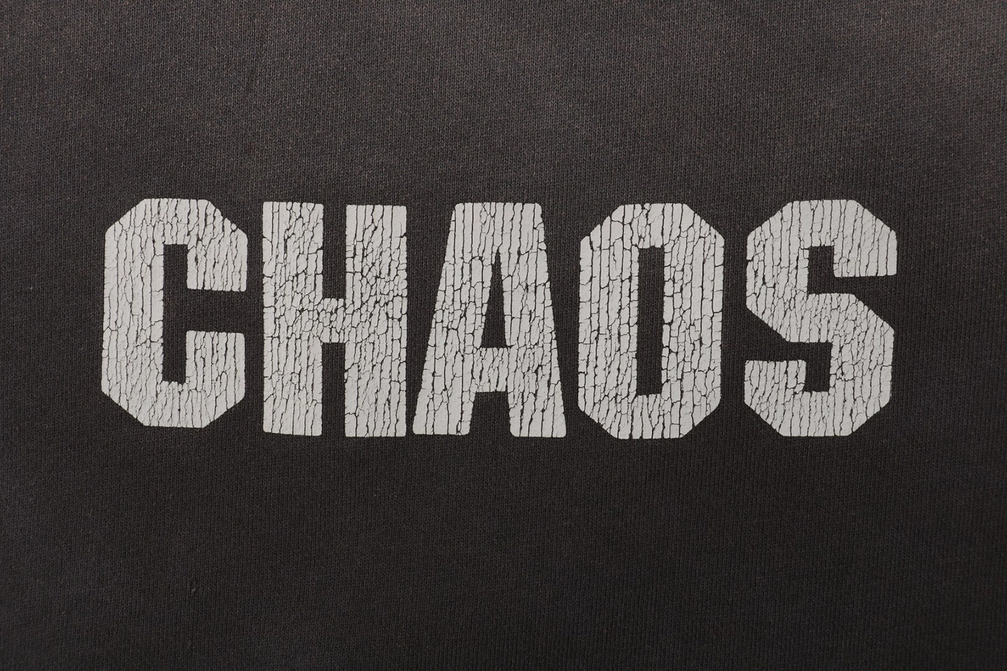 The Saint Michael CHAOS Distressed Crewneck Sweatshirt features bold “CHAOS” and “Säint-Mx6” lettering on a heavily washed black base, capturing the brand’s signature grunge aesthetic. Crafted from heavyweight cotton with meticulous distressing throughout the cuffs, hem, and sleeves, it offers an edgy, lived-in feel. The oversized silhouette and raglan sleeves ensure relaxed comfort, while ribbed trims provide structure. A rebellious streetwear piece that speaks volumes without saying a word.