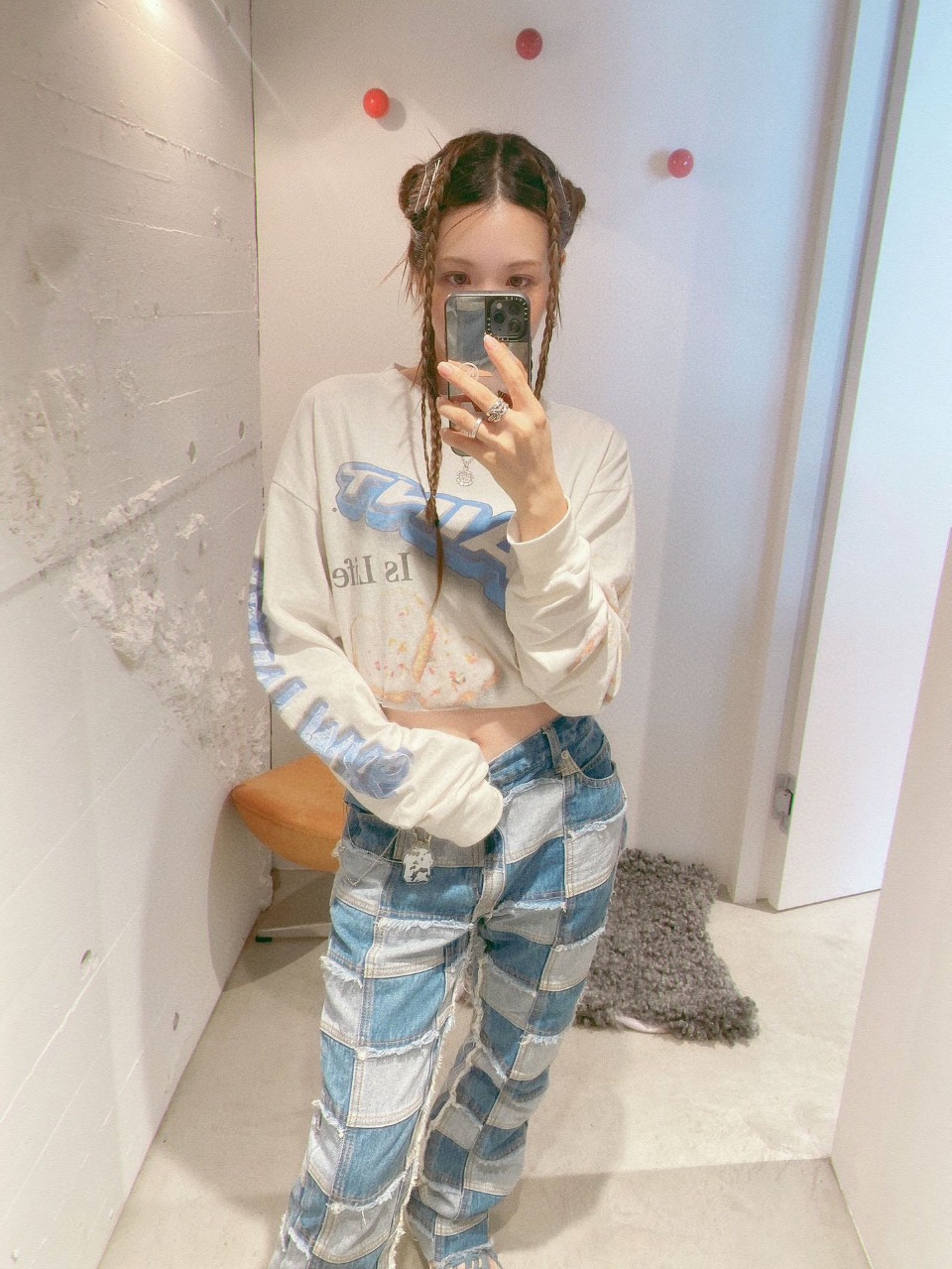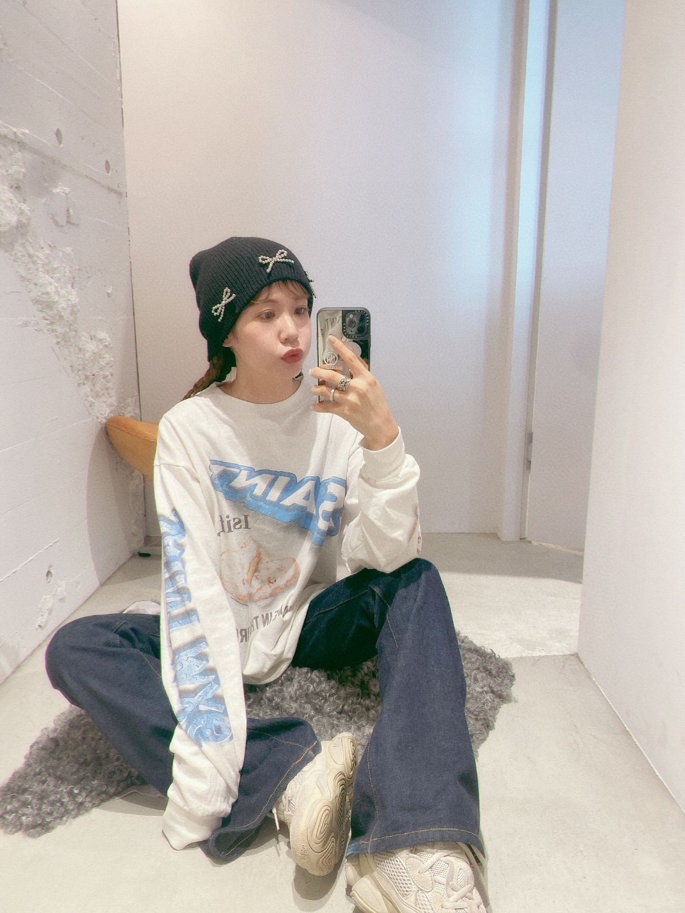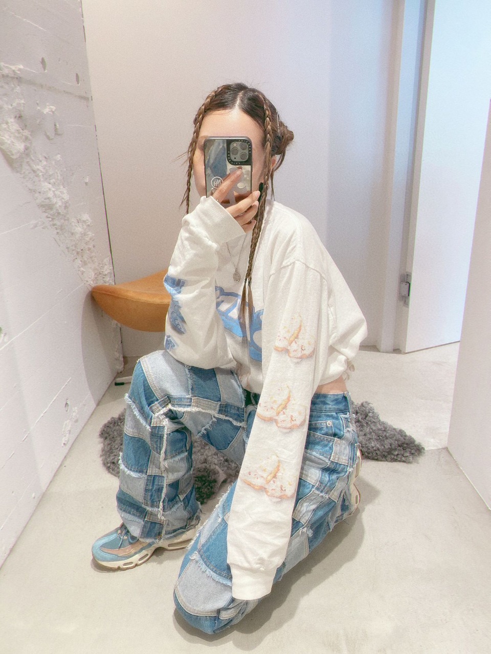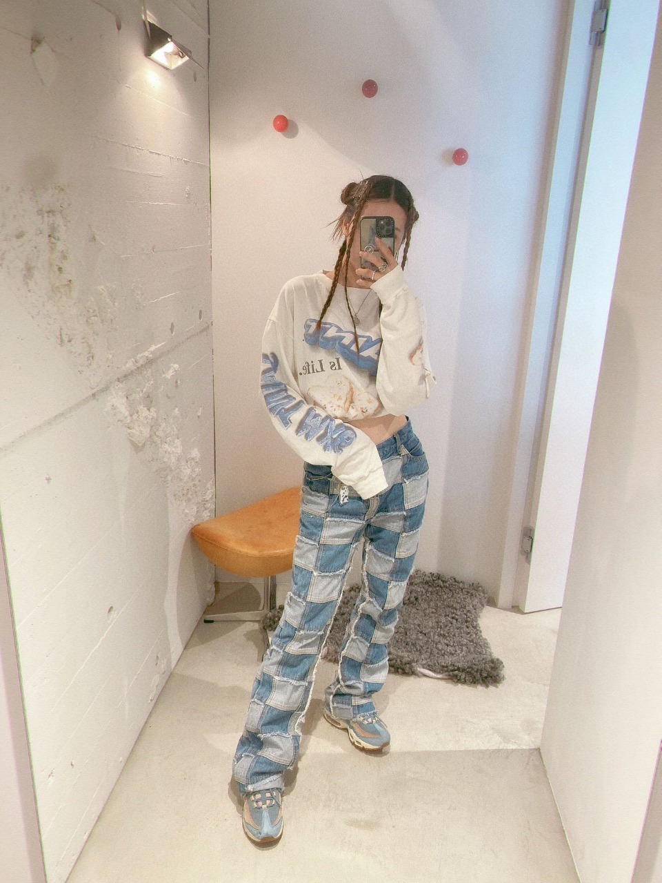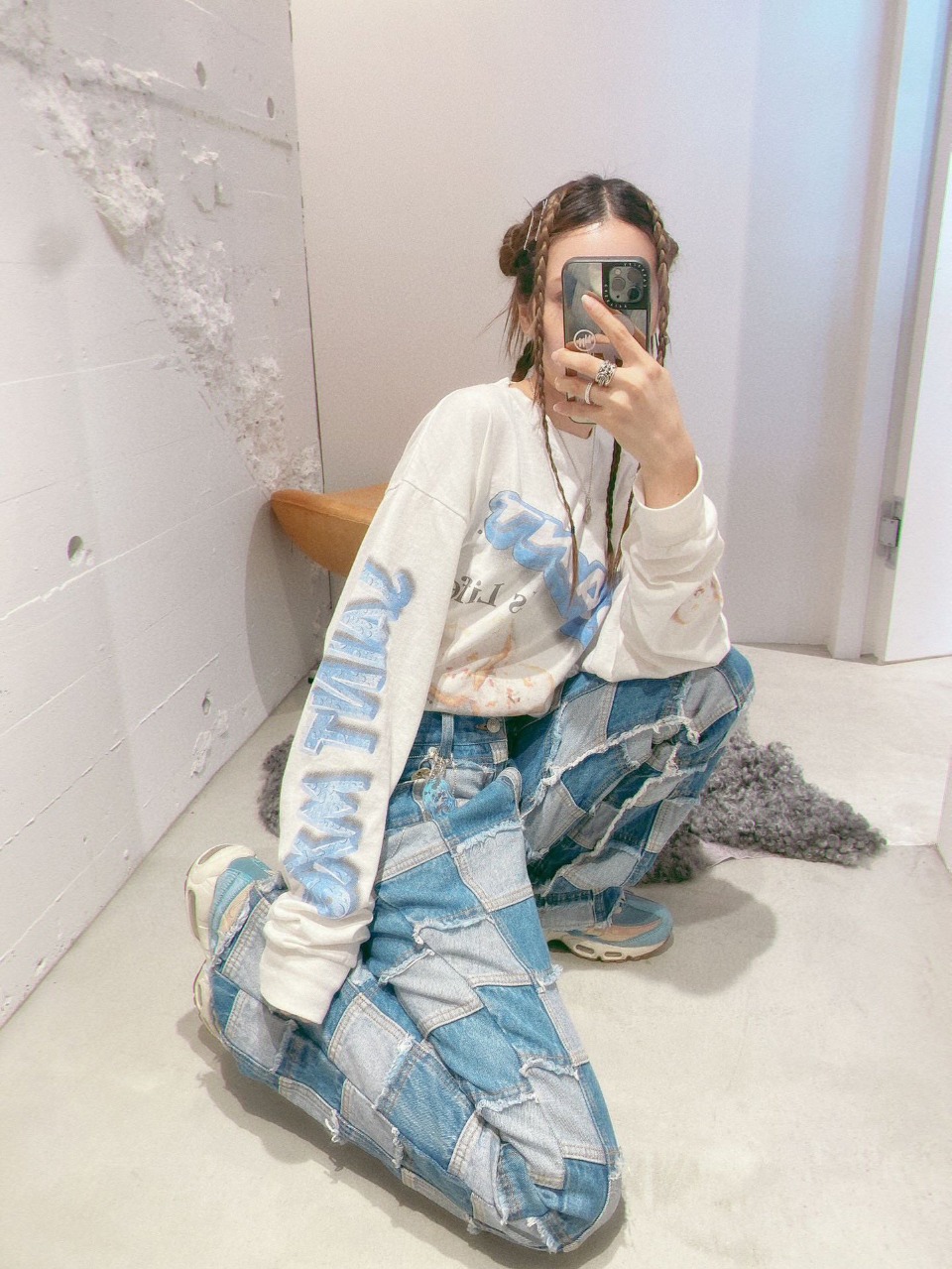 The design of the Saint Michael Cookie Letter Print Shirt is inspired by the classic letter print pattern. This long-sleeved shirt is made of 260 grams of 100% pure cotton 16 woven double-screen sweat fabric, ensuring comfort and breathability. At the same time, the screwing part of the shirt uses 300 grams of 100% pure cotton elastic no-root screwing material, which increases the softness and comfort of the shirt. After the ready-to-wear water washing treatment, the weight of the fabric increased to approximately 280 grams, and the overall showed a natural aging effect.