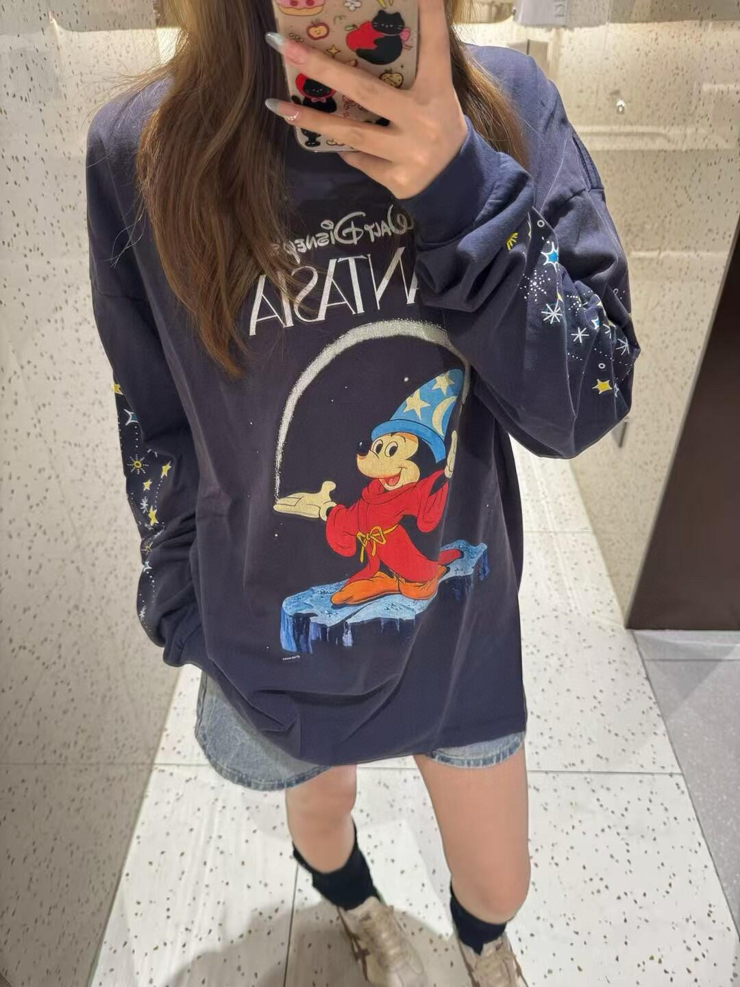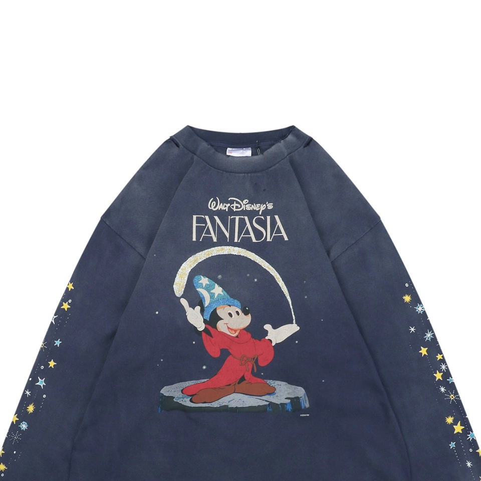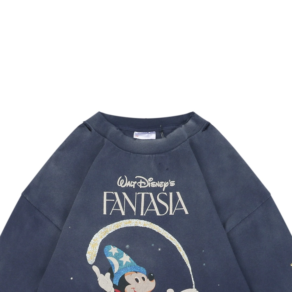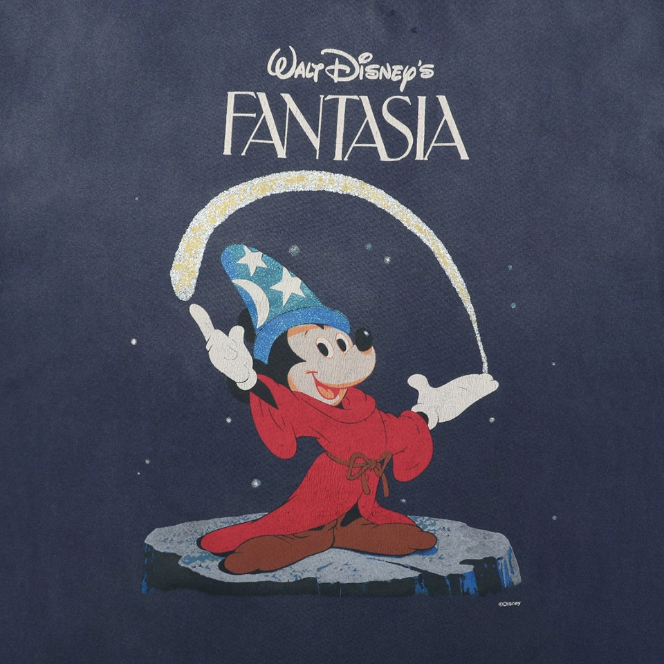 The Saint Michael Fantasia Mickey Graphic Shirt pays tribute to classic Disney animation with a distressed vintage wash and bold graphics. The front showcases Mickey Mouse in his sorcerer’s outfit from “Fantasia,” while the back features oversized “SAINT” lettering. Star prints along the sleeves add a magical touch, blending nostalgic charm with Saint Michael’s signature rugged aesthetic. Crafted from heavyweight cotton, it’s built for both comfort and statement-making style.