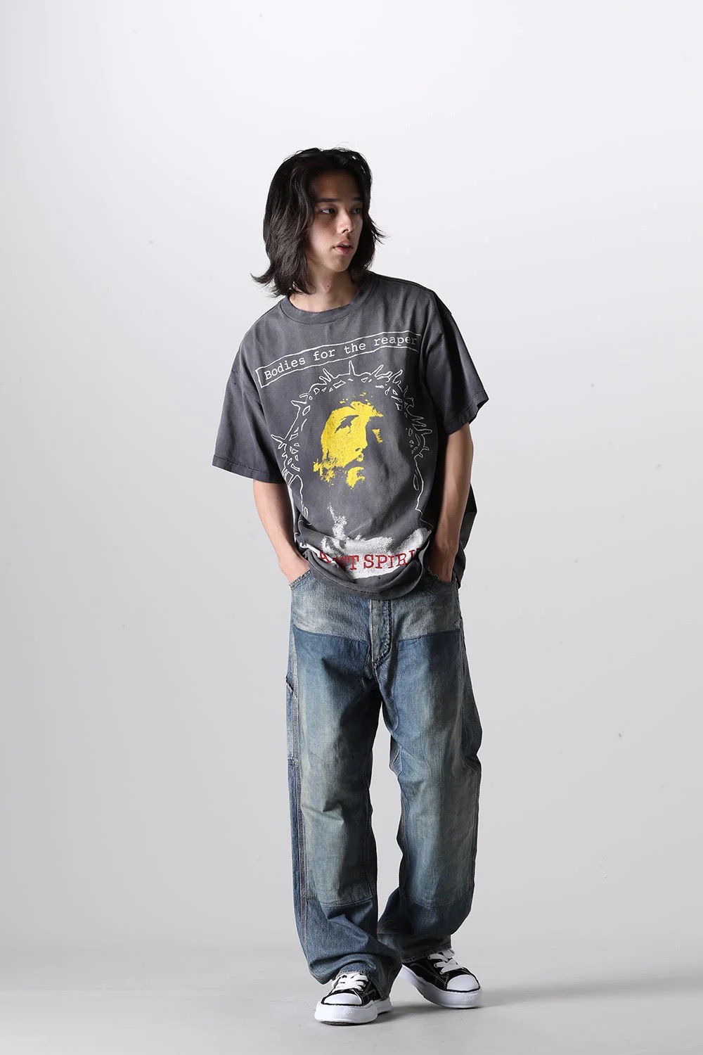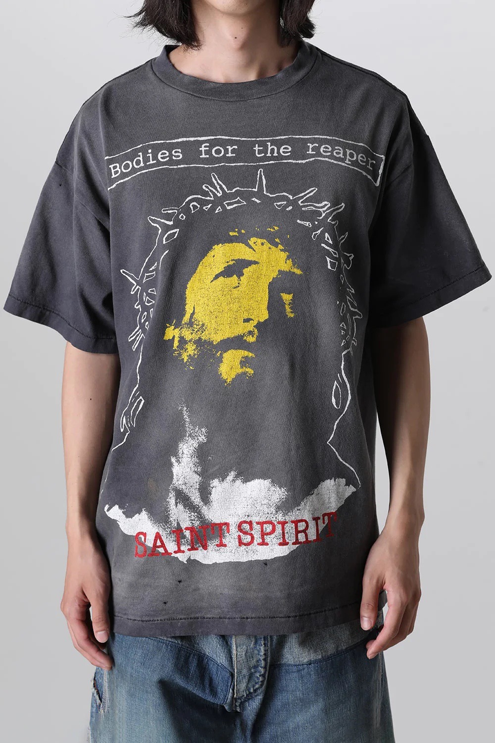 Saint Michael Jesus Hell & Angel Print T-Shirt blends religious symbolism with raw street aesthetics, featuring powerful imagery of Jesus, angels, and hell to explore themes of faith, redemption, and inner conflict. Rendered in a vintage-inspired, distressed print style, the design carries intense visual drama and narrative depth. Crafted in an oversized fit with soft, breathable fabric, this tee serves as both a bold fashion piece and a wearable canvas of belief and resistance.
