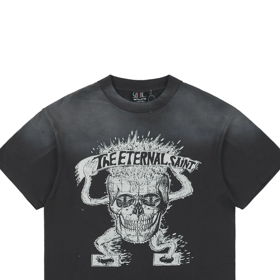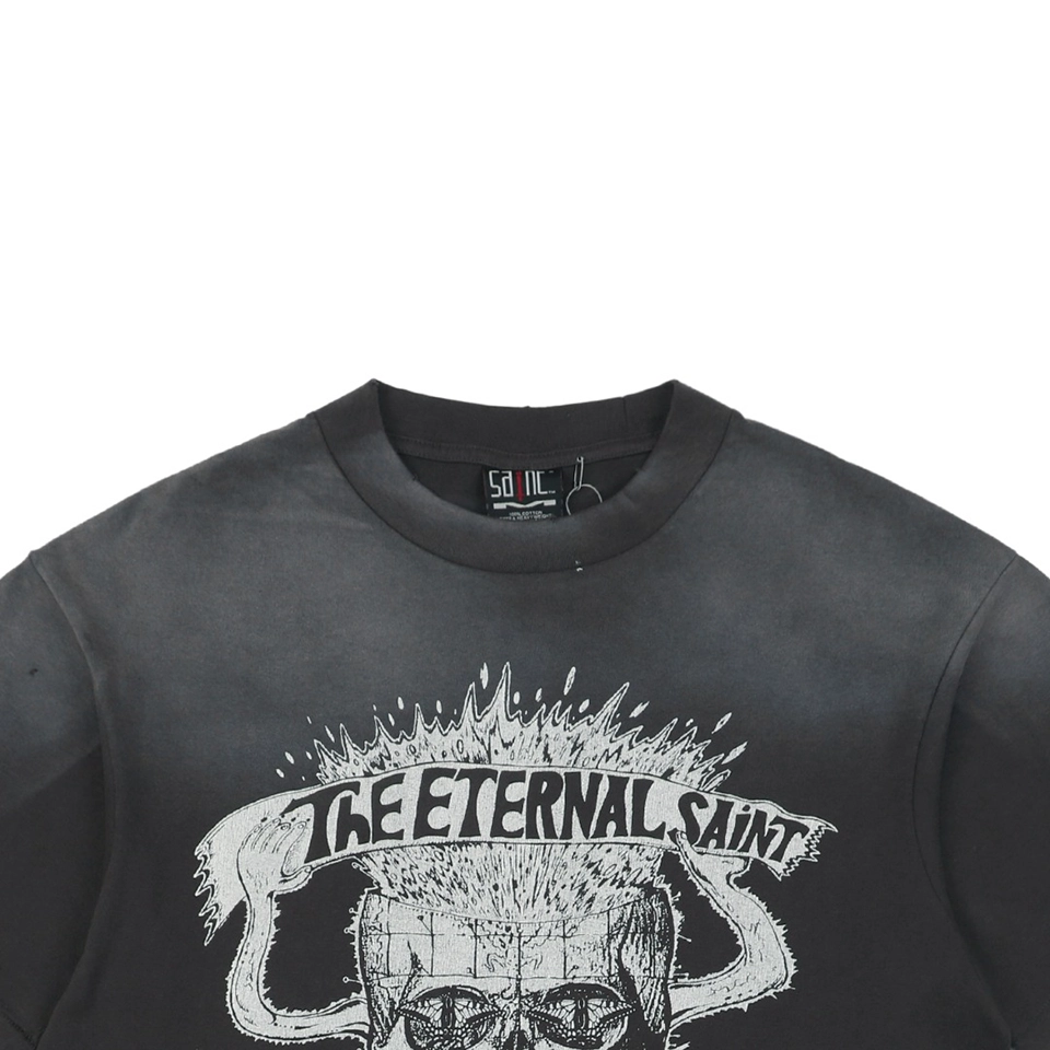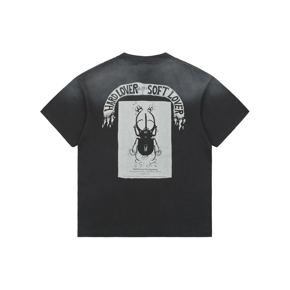 The Saint Michael Skull Beetle Vintage Washed Distressed T-Shirt delivers a bold fusion of gothic-inspired graphics and heavy vintage aesthetics.