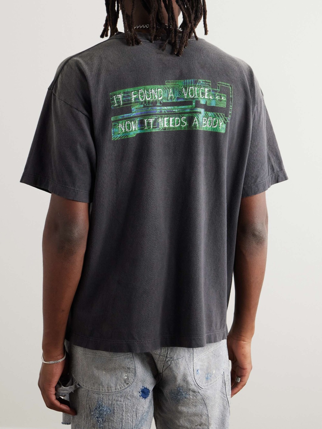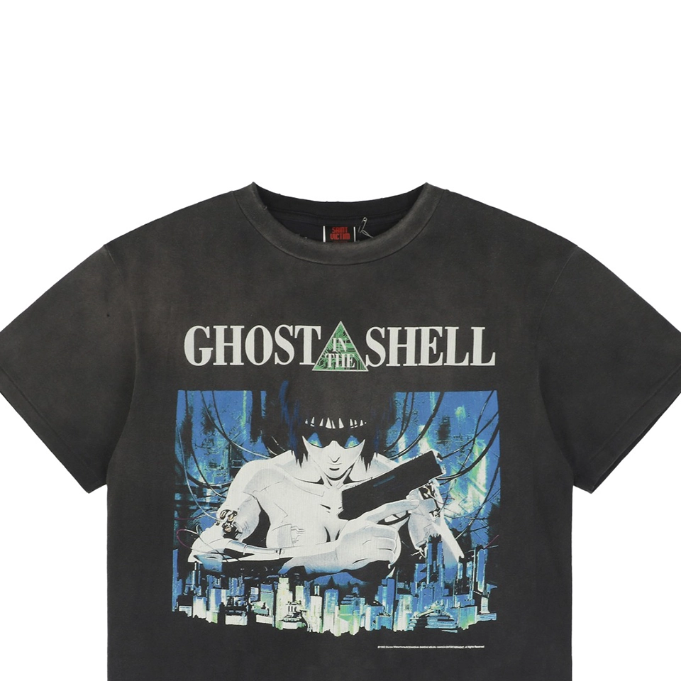 The Saint Michael Sunglasses Circuit Element Graphic T-Shirt blends a futuristic portrait illustration with subtle hints of mechanical circuitry and cyberpunk symbolism. Centered around a stoic figure in blackout sunglasses, the design explores themes of isolation, digital identity, and controlled chaos. With its gritty, grayscale aesthetic and minimalist composition, this piece reflects Saint Michael’s commitment to philosophical design and visual depth. Constructed from high-thread-count cotton and cut in a relaxed silhouette, the tee balances intellectual statement and wearable edge.
