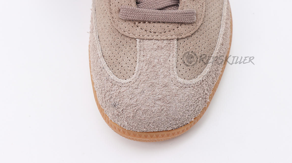 The “Chalky Brown Gum” colorway is complemented by a natural gum rubber outsole, a hallmark of the Samba silhouette that is celebrated for its non-slip traction and flexibility. This feature ensures the shoe is as practical on the street as it is on the dance floor or sports field, adhering to the Samba’s versatile roots.