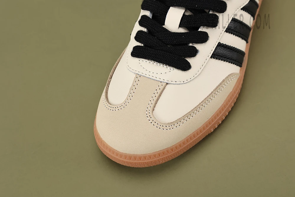 The design concept of the Samba OG Cream White Sand Strata is centered around blending classic elements with contemporary flair. The iconic three stripes on the sides remain a defining feature, while the addition of sand-colored overlays gives the sneaker a fresh, updated look. The gum rubber outsole not only enhances the shoe’s aesthetic appeal but also provides excellent traction and durability.