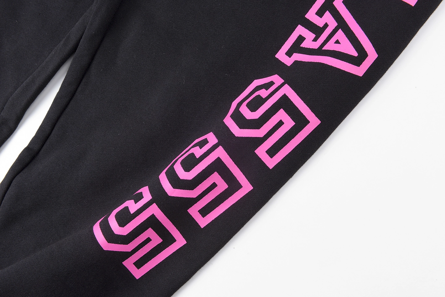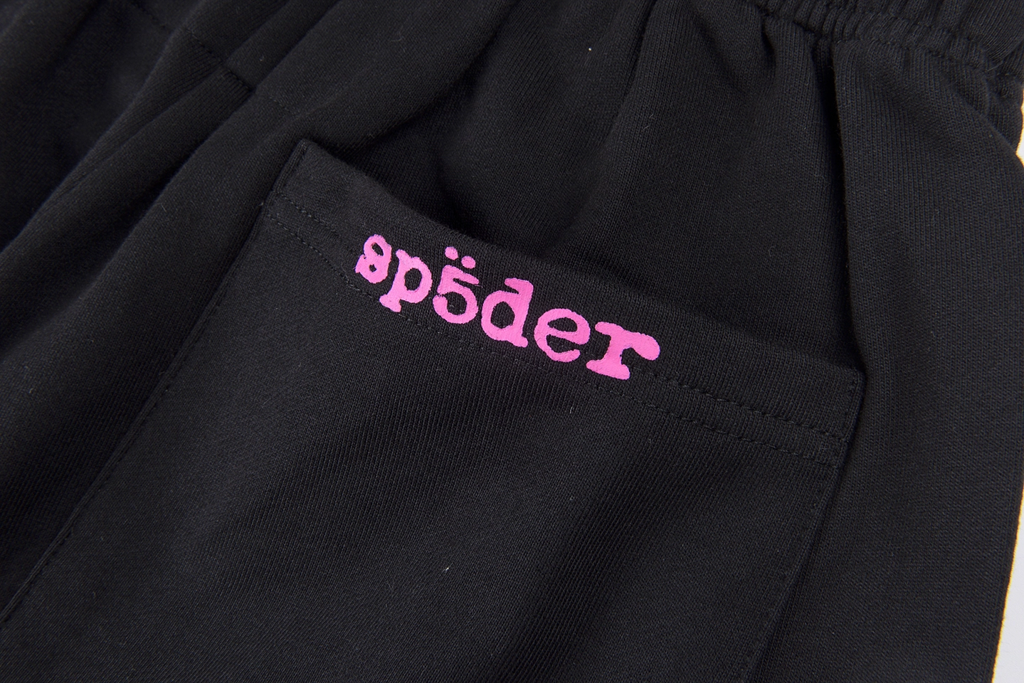 These Sp5der 555 Arachnophobia Black Sweatpants showcase a bold, arched “555 ARACHNOPHOBIA 555” graphic in striking pink lettering across the front legs. Made from soft fleece cotton, they combine comfort with street-ready impact. The relaxed fit and elastic cuffs ensure laid-back wearability, while the rear pocket features a small “sp5der” embroidery in matching pink, adding a signature touch. A standout piece for fans of bold, fearless fashion.