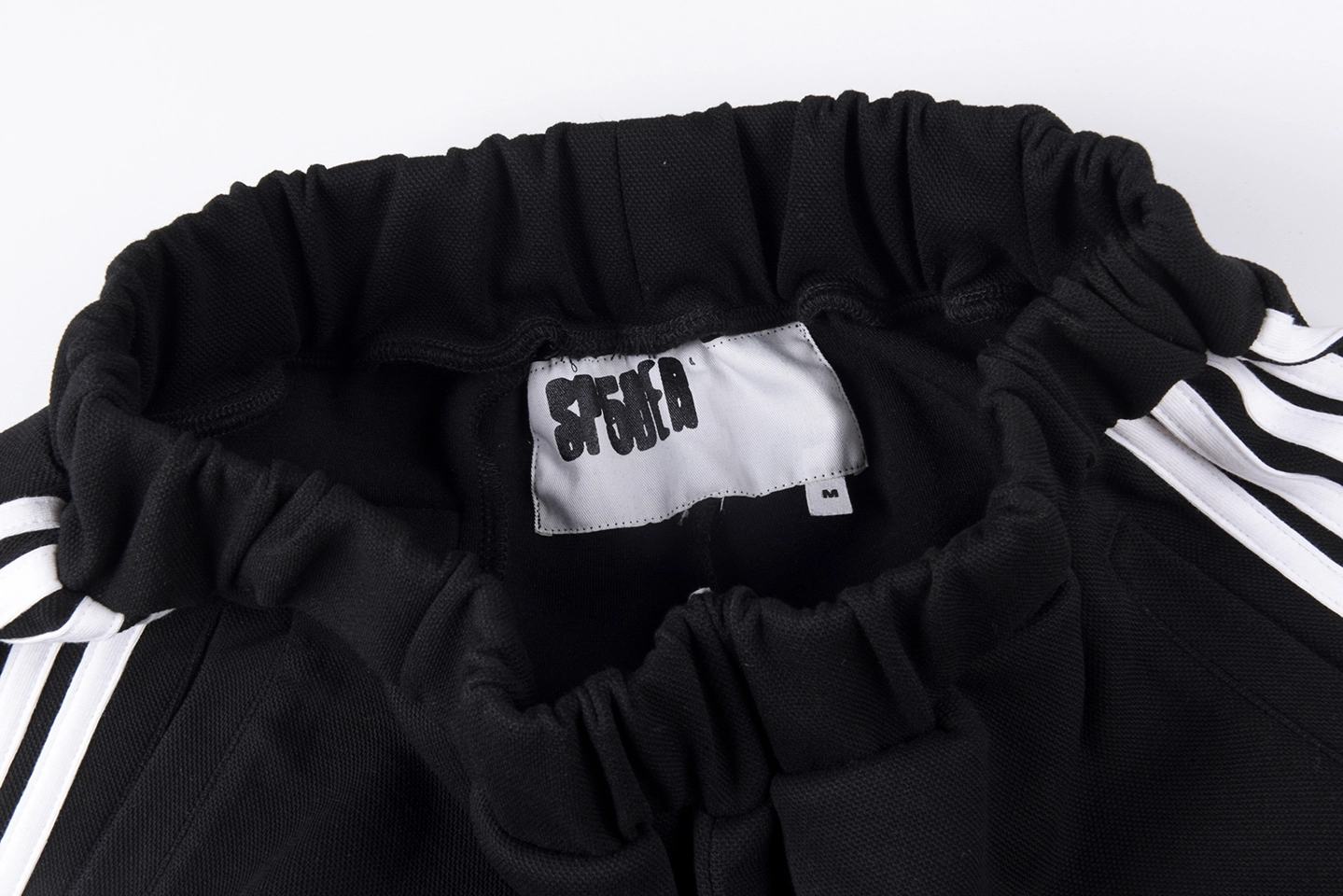 The Sp5der Black White Stripe Red Logo Track Pants blend classic athletic aesthetics with bold streetwear identity. Designed on a sleek black base, the pants feature clean white dual side stripes running along the legs for a timeless sport-inspired look. A striking red Sp5der logo detail adds vibrant contrast, giving the piece a signature graphic edge while keeping the overall design minimal and versatile.