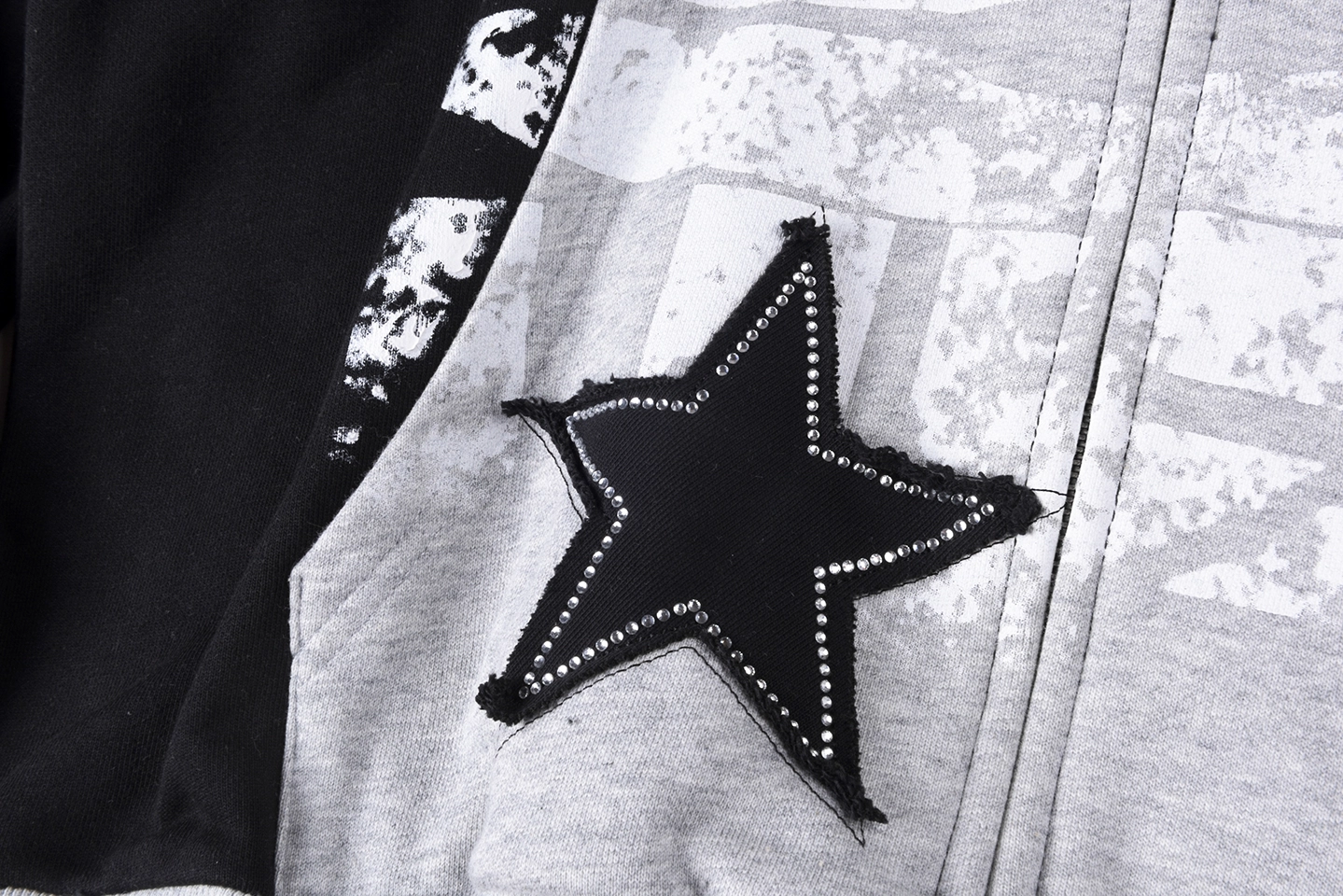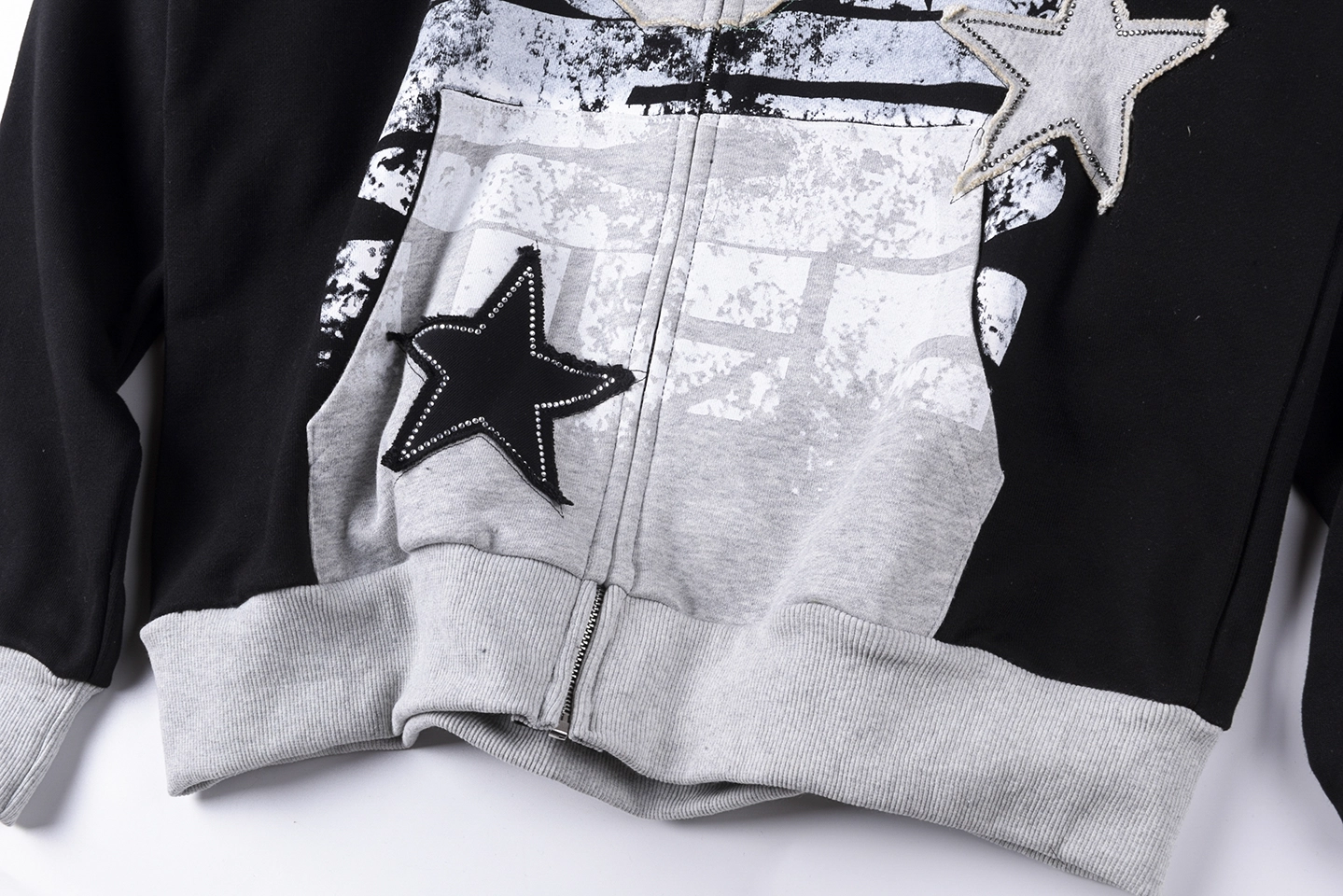 Designed with a black body and grey hood/cuffs contrast, this hoodie creates a layered visual effect that feels both modern and versatile. The front showcases a large “Future Core” graphic print, enhanced with star patch details that add texture and dimension. A script-style Sp5der logo runs along the sleeve, reinforcing the signature branding from multiple angles.