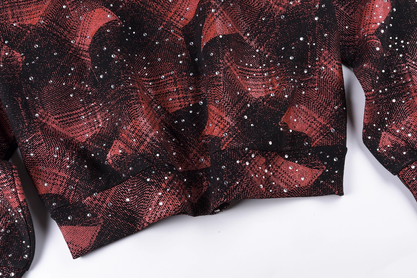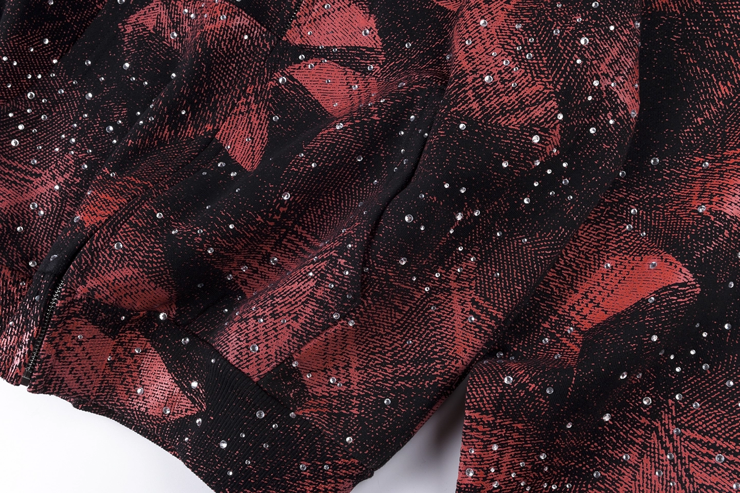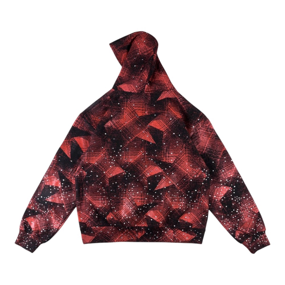 Constructed from premium cotton fleece, this hoodie delivers a soft, heavyweight feel while maintaining structure and durability. The piece features an all-over red and black abstract pattern, layered with splatter-style detailing that adds depth and a gritty, high-impact aesthetic.