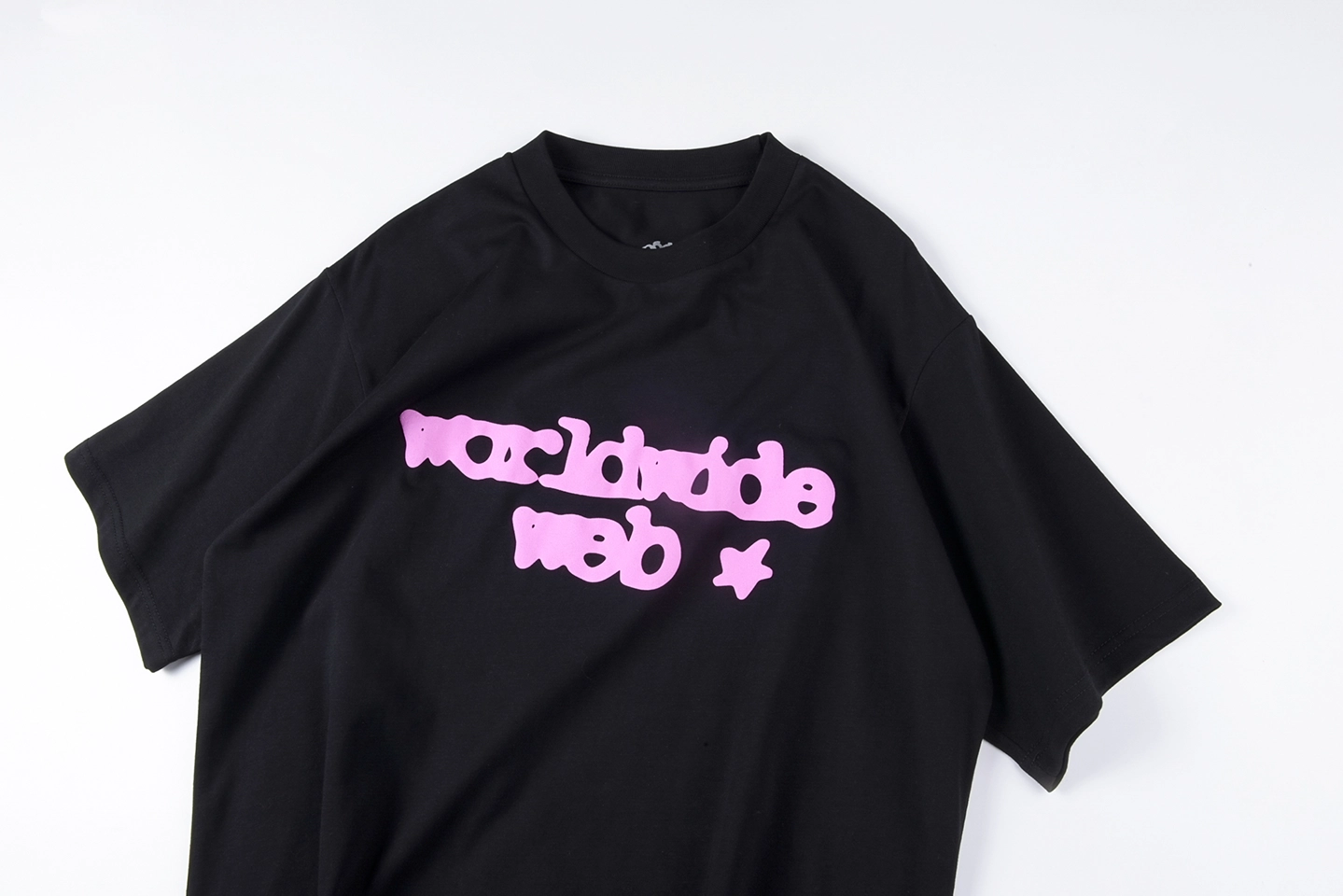The Sp5der “Worldwide Web” Graphic T-shirt redefines streetwear with its signature chaotic energy. This oversized tee comes in two electrifying colorways—Black/Pink and Yellow/Black—each adorned with a cartoon-style “worldwide web” puff print on the front and a massive spiderweb graphic across the back. Crafted from soft heavyweight cotton, it delivers all-day comfort and a strong visual impact that channels the bold aesthetic Sp5der is known for.