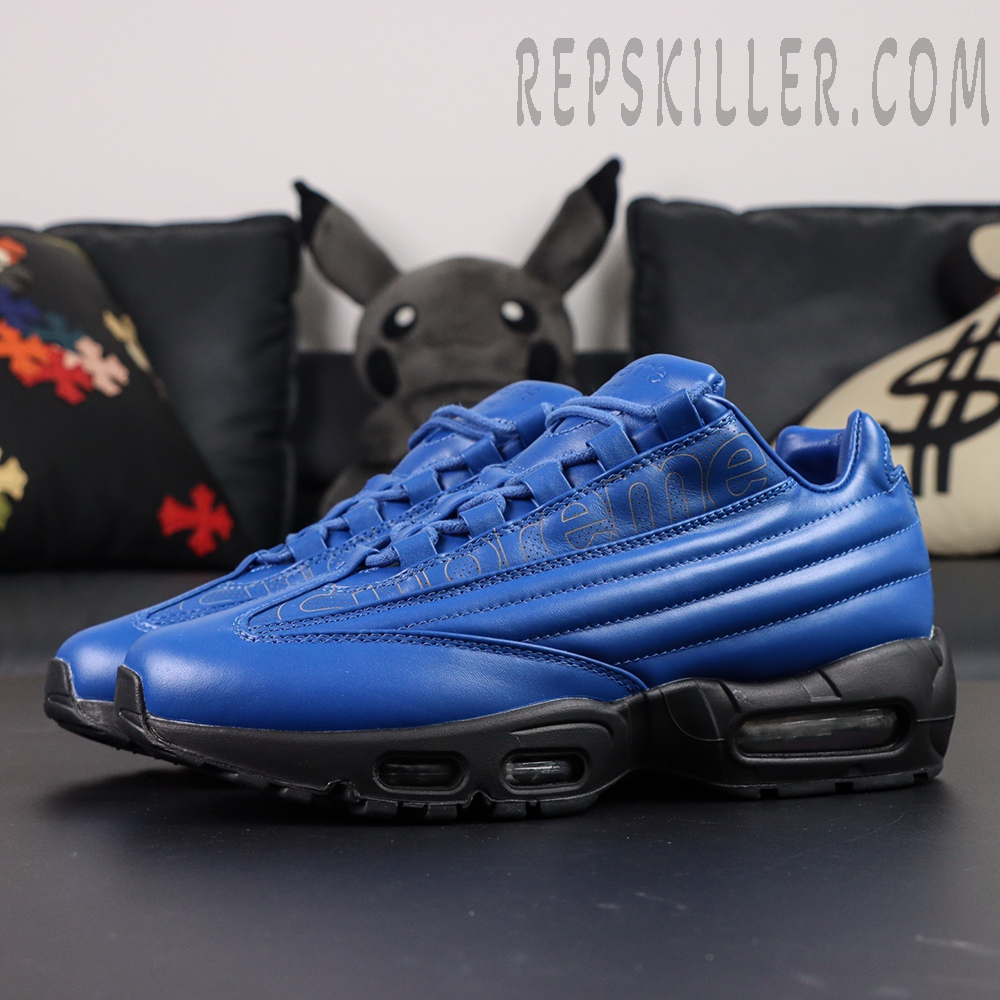 Sup x Air Max 95 Lux ‘Hyper Cobalt’ reimagines the classic Sergio Lozano runner through a bold, fashion-forward lens. Dressed entirely in vivid Hyper Cobalt blue, this luxury edition trades the typical mesh for premium Italian leather, elevating the iconic anatomical paneling. Laser-cut Sup branding cuts through the sidewalls, delivering identity without loudness. Anchored by a black full-length Air unit, the silhouette balances sport heritage with high-end craftsmanship.
