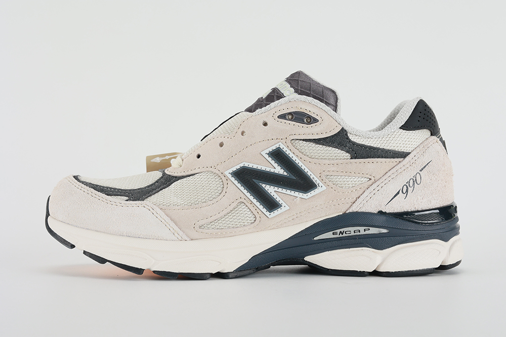 The ‘Moonbeam’ colorway is meticulously applied to a carefully selected mix of premium materials, including plush suede and breathable mesh, ensuring durability, comfort, and a luxe finish. The sneaker’s design retains the classic 990v3 silhouette while introducing subtle updates that reflect Santis’s keen eye for detail and New Balance’s innovative technology. The result is a sneaker that offers an exceptional wearing experience, combining New Balance’s renowned cushioning and support with a fresh, fashion-forward look.
