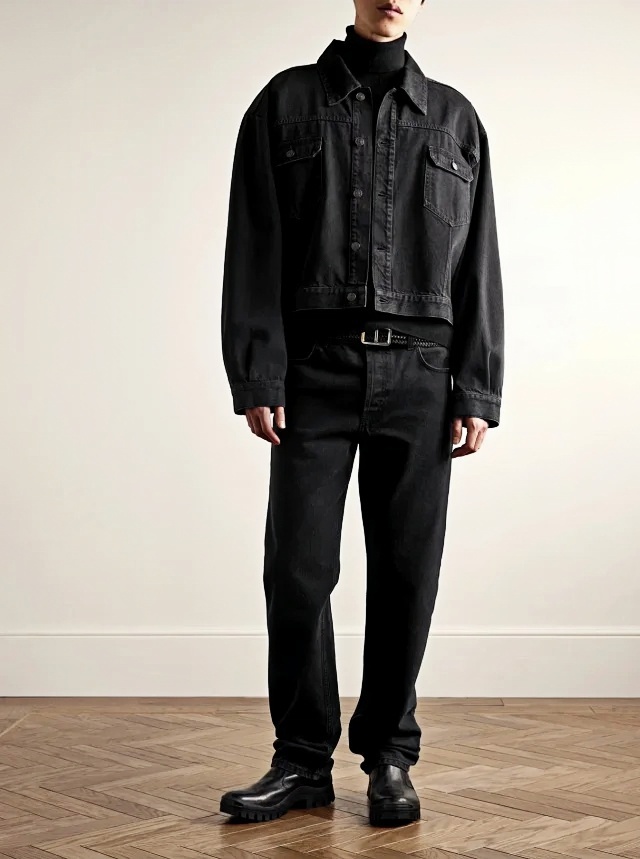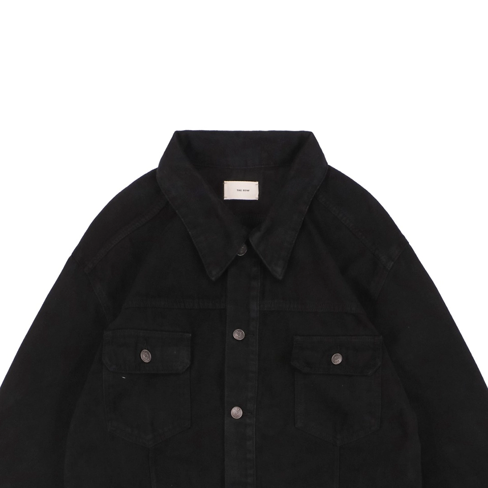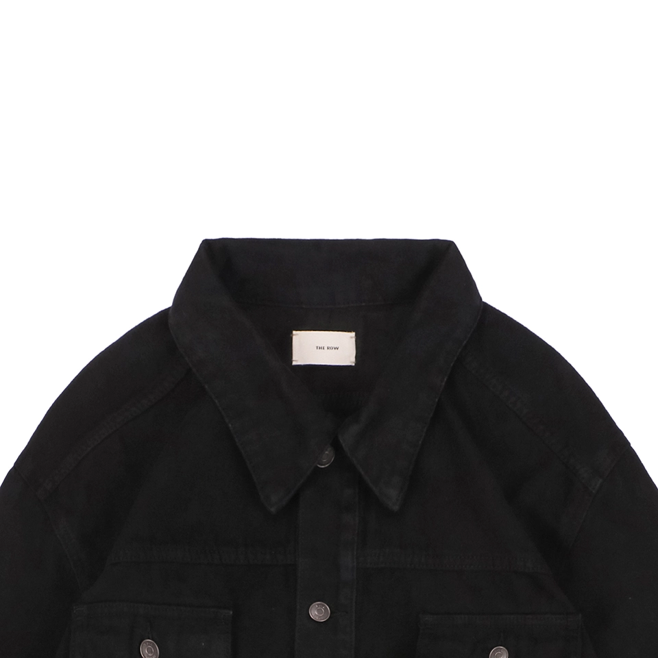 The Row Orson Black Denim Jacket embodies minimalist sophistication with its sleek black hue and refined tailoring. Crafted from premium pure cotton denim, it offers a soft yet structured feel for exceptional comfort and durability. The streamlined design features a classic spread collar and a concealed button placket, maintaining a subtle yet luxurious aesthetic. With its relaxed fit and natural drape, this jacket is perfect for layering over a T-shirt or knitwear, effortlessly elevating any modern wardrobe.