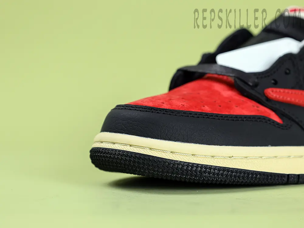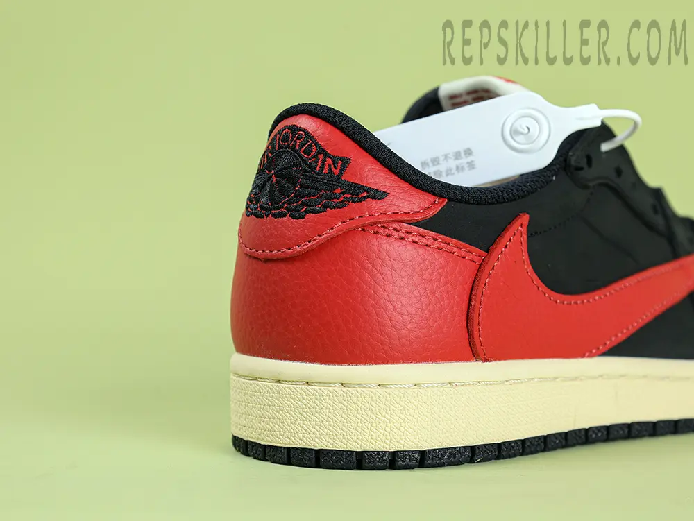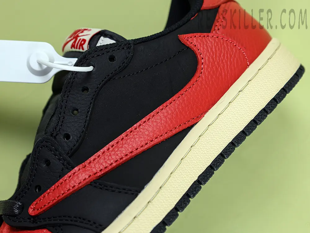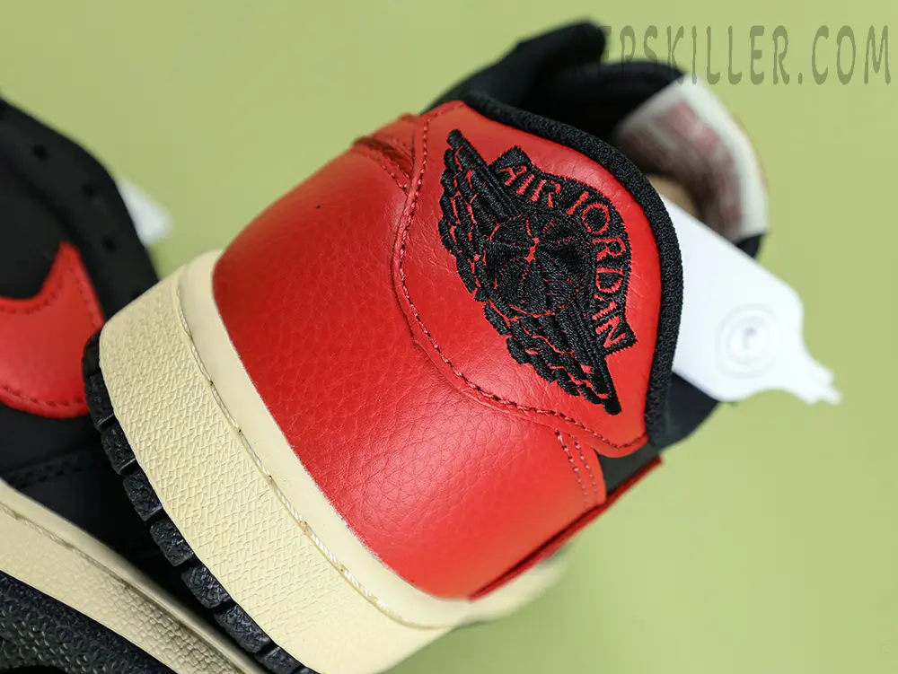 The Travis Scott x Air Jordan 1 Low ‘Bred’ reimagines a classic colorway through the lens of La Flame’s rebellious design language. Dressed in deep black and fiery red leather, the upper flips the script with a signature reverse Swoosh, adding asymmetry and bold flair. Cactus Jack branding appears on the tongue and heel, reinforcing the collab’s street-edge. Finished with a vintage-style midsole and responsive cushioning, this low-top icon fuses heritage and hype effortlessly.