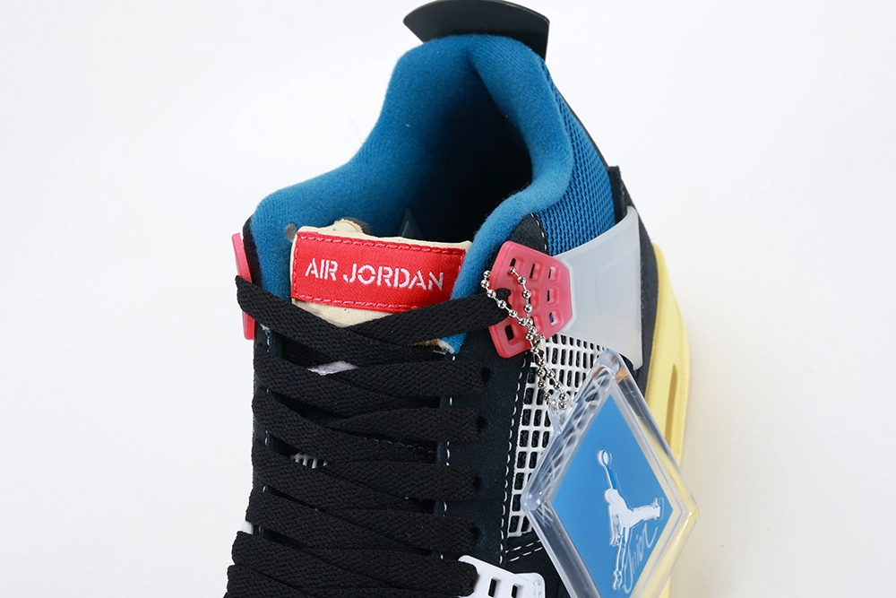 What sets the Union LA x Air Jordan 4 ‘Off Noir’ apart are its thoughtful design details. The shoe features unique stitched seams and foldable tongues that reveal a hidden Air Jordan label when flipped—details that resonate with sneaker aficionados who appreciate innovation in their footwear. Additionally, the co-branded tag on the tongue and the specially designed UN/LA lateral tag add exclusivity to this collaborative masterpiece.