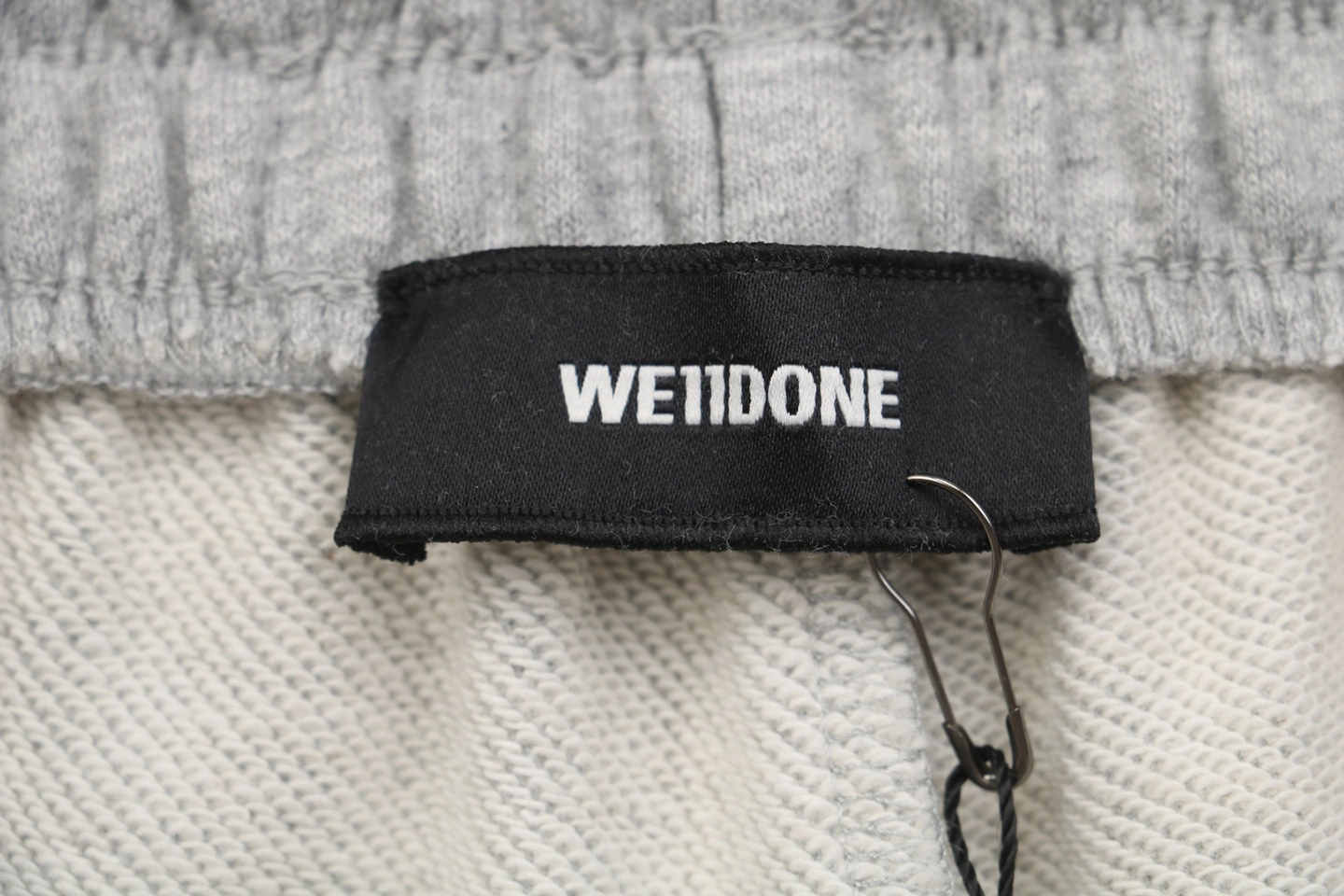 The We11done Distressed Letter Sweatpants are crafted from premium 26-count combed cotton using a 420g heavy-weight loopback terry fabric. The material features a soft yet structured texture, offering durability, breathability and a naturally draping silhouette. Constructed with a half-tubular body and seamless side panels, the pants replicate the original We11done oversized look with cleaner lines and improved comfort.
