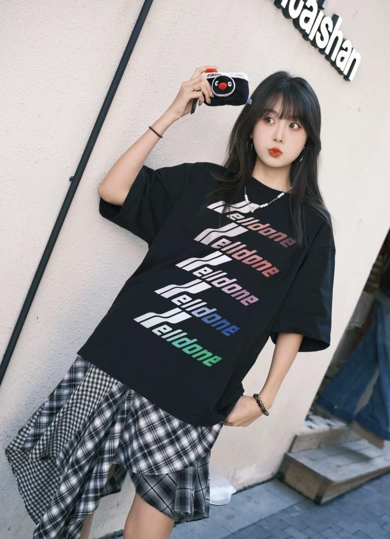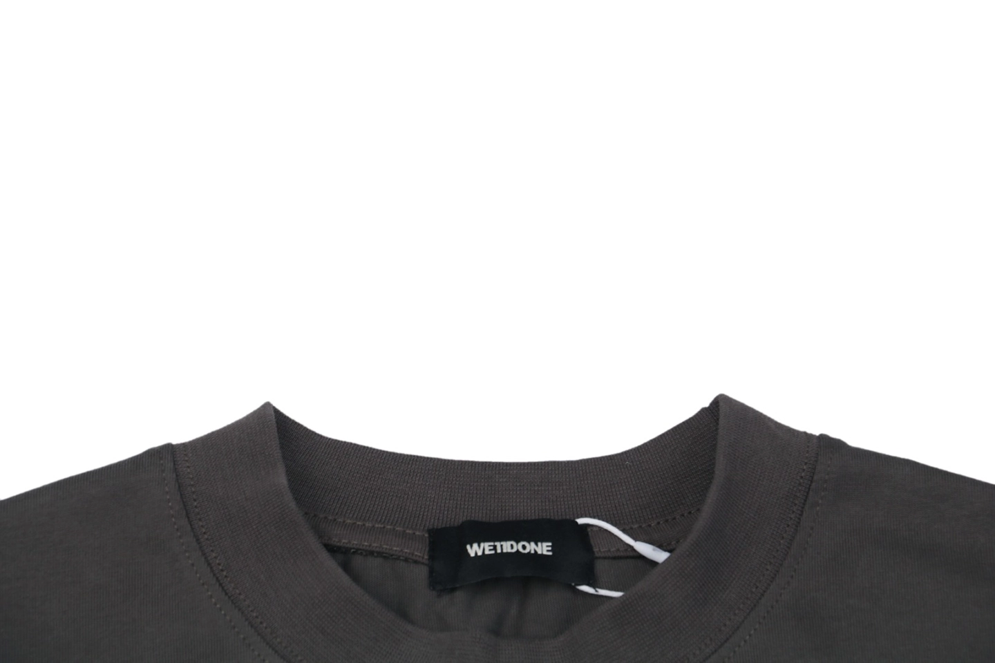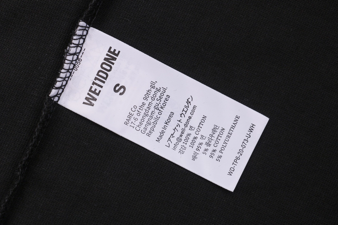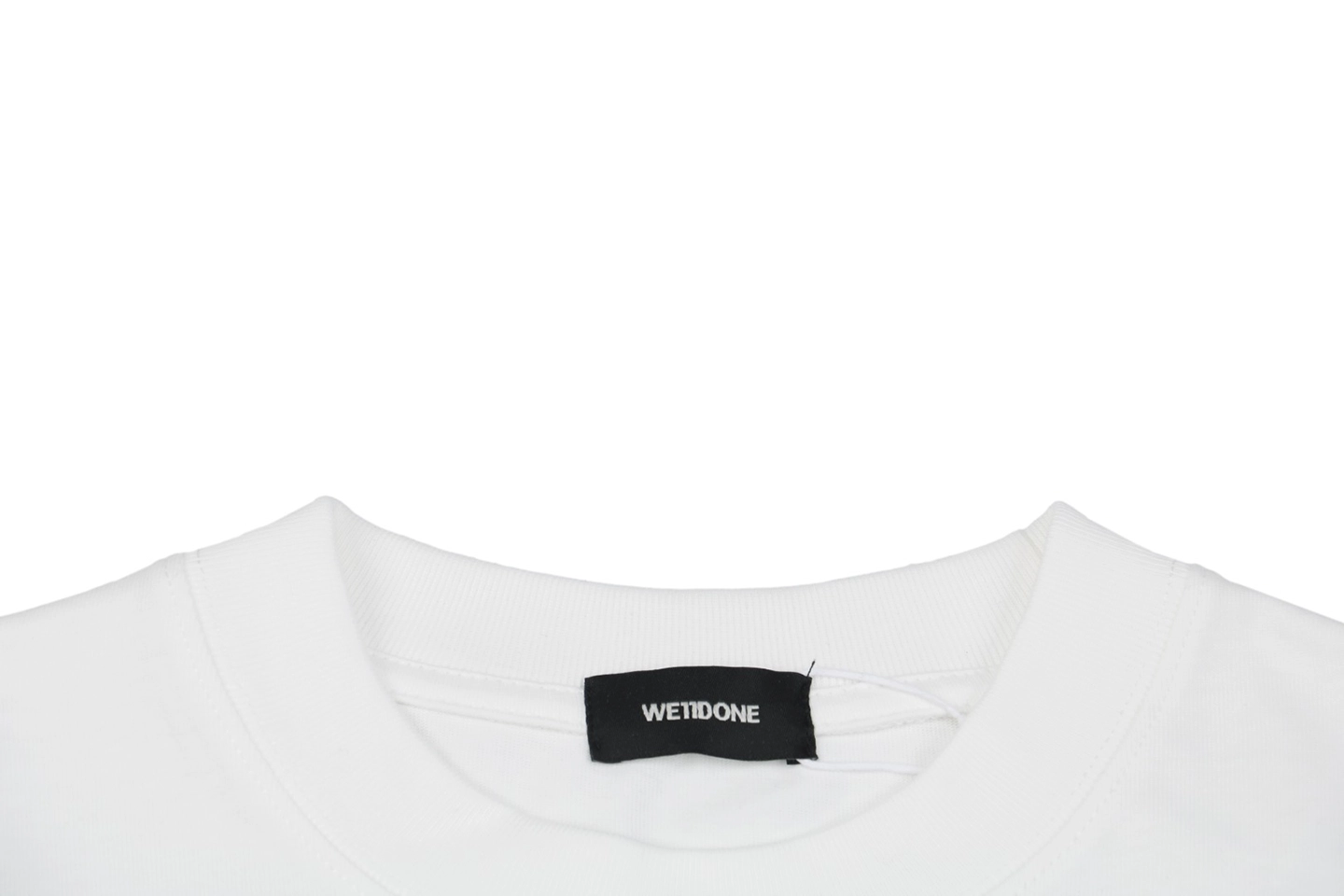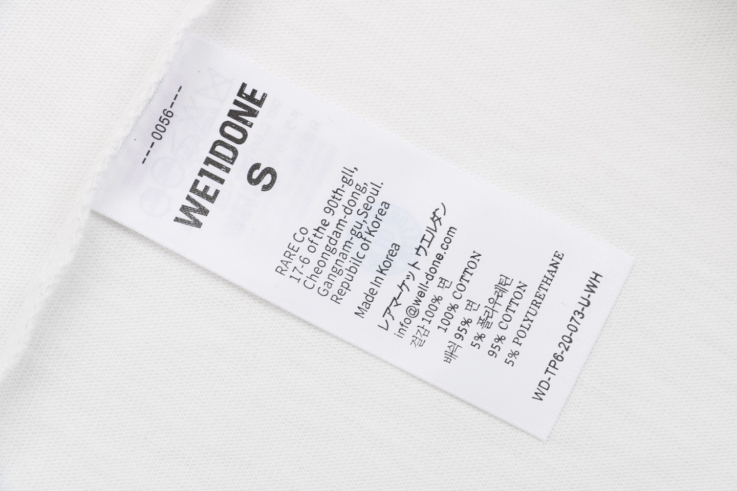 The We11done Multicolor Gradient Logo T-shirt brings a lively twist to minimalist streetwear. Crafted from soft cotton in a classic white/black/dark grey tone, the front features a stacked arrangement of the We11done logo in a spectrum of colorful rhinestone-like gradients. The simple rear keeps the attention on the vibrant front print, while the oversized fit adds comfort and attitude.