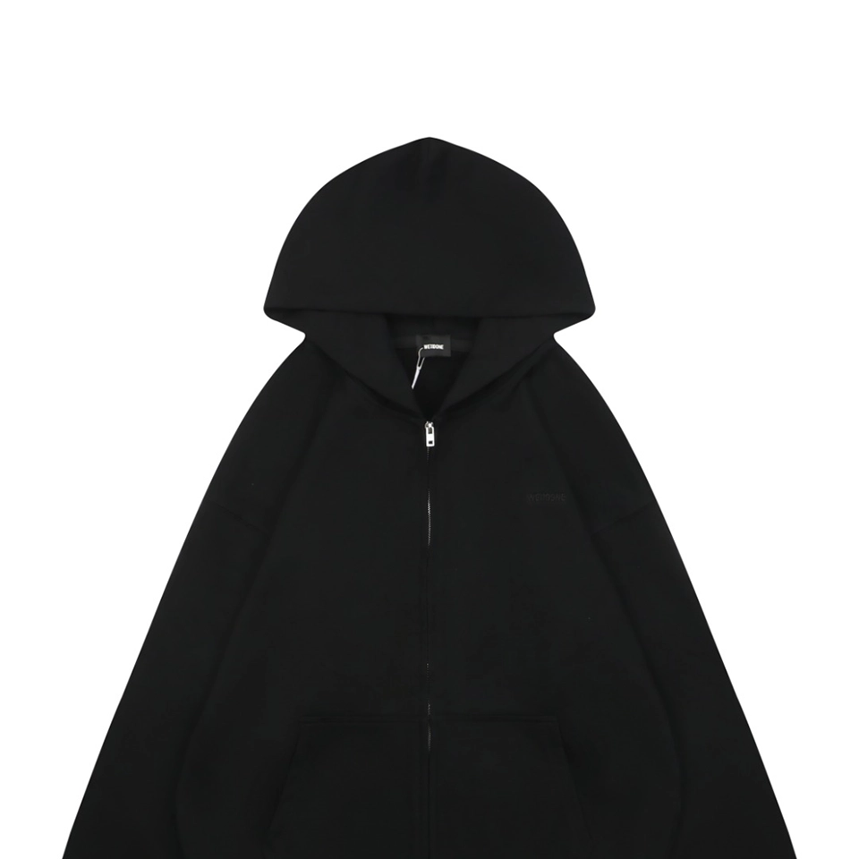 The We11done Rhinestone Logo Hoodie Jacket draws inspiration from iconic 1980s retro street culture, combining the brand’s signature minimalist silhouette with a striking rhinestone logo detail. Made from custom heavyweight fabric that has undergone a specialized same-bath dyeing process, the jacket offers a soft yet structured texture with excellent durability and long-lasting color saturation.