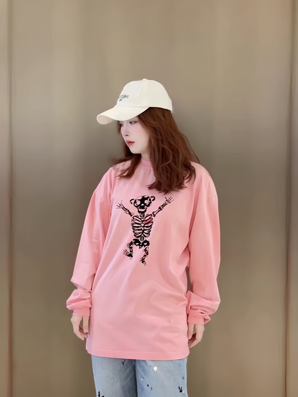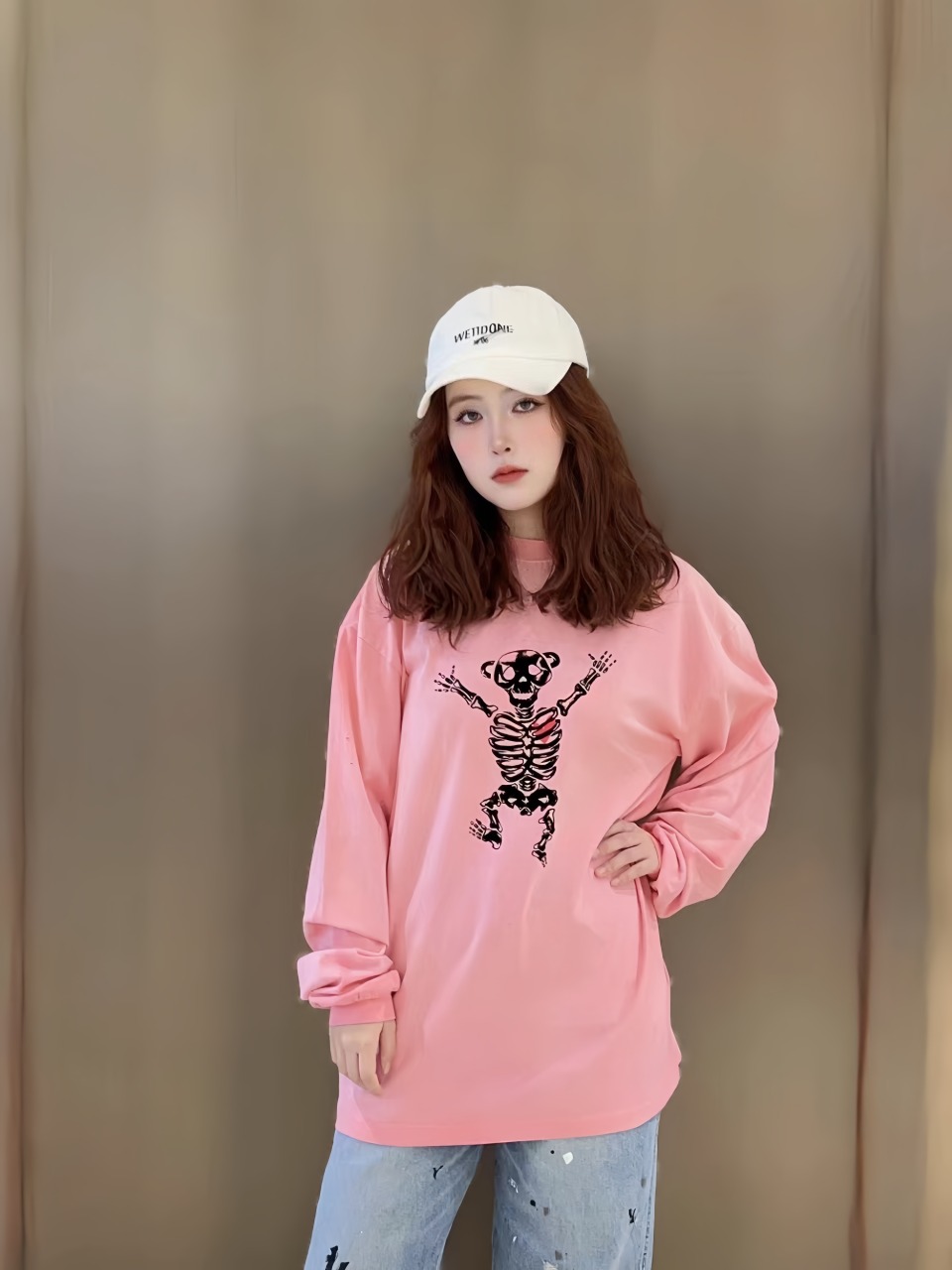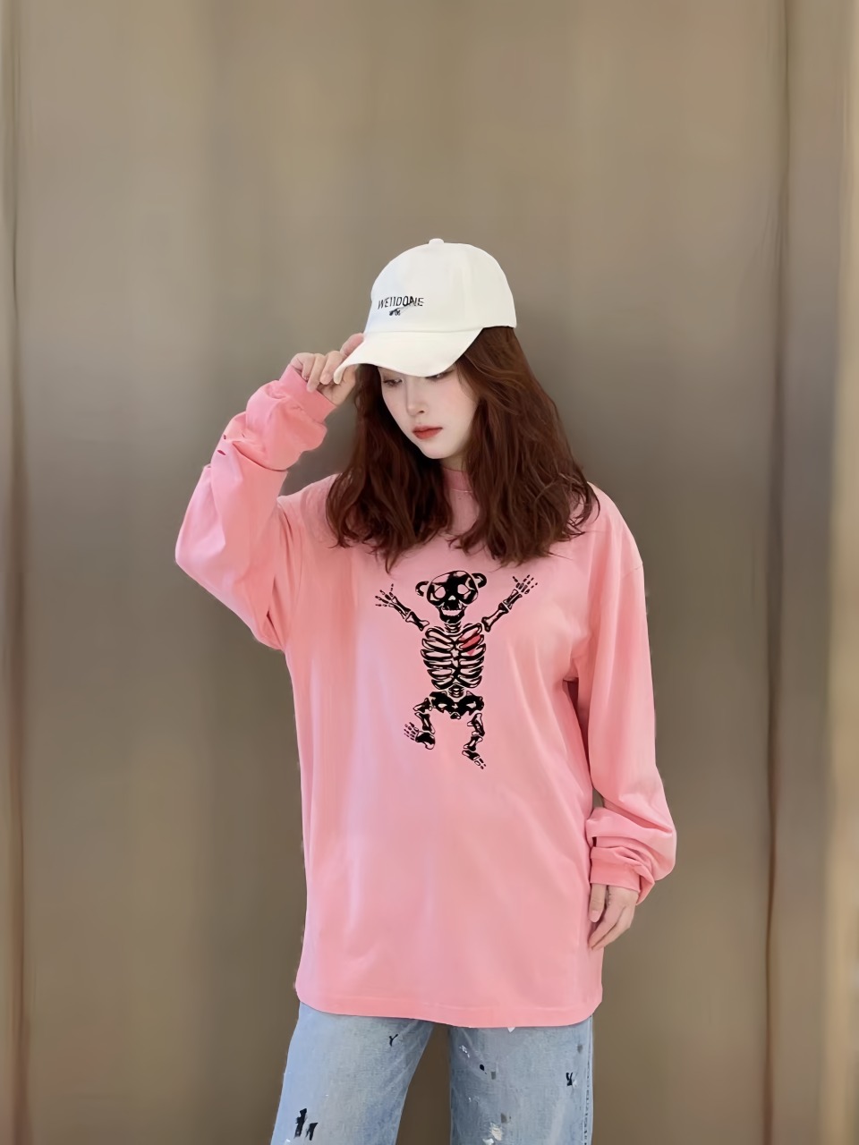 The We11done long-sleeve shirt showcases a bold skeleton raised-hands bear print, delivering a trendy and edgy streetwear vibe. Crafted from high-quality cotton, it ensures a soft, breathable feel for all-day comfort. The relaxed fit and classic crewneck design add a laid-back yet stylish touch. Perfect for daily wear, it pairs effortlessly with jeans, joggers, or layered outfits for a distinctive look.