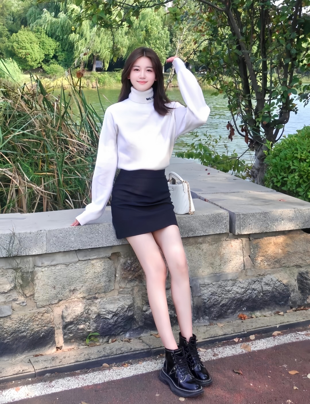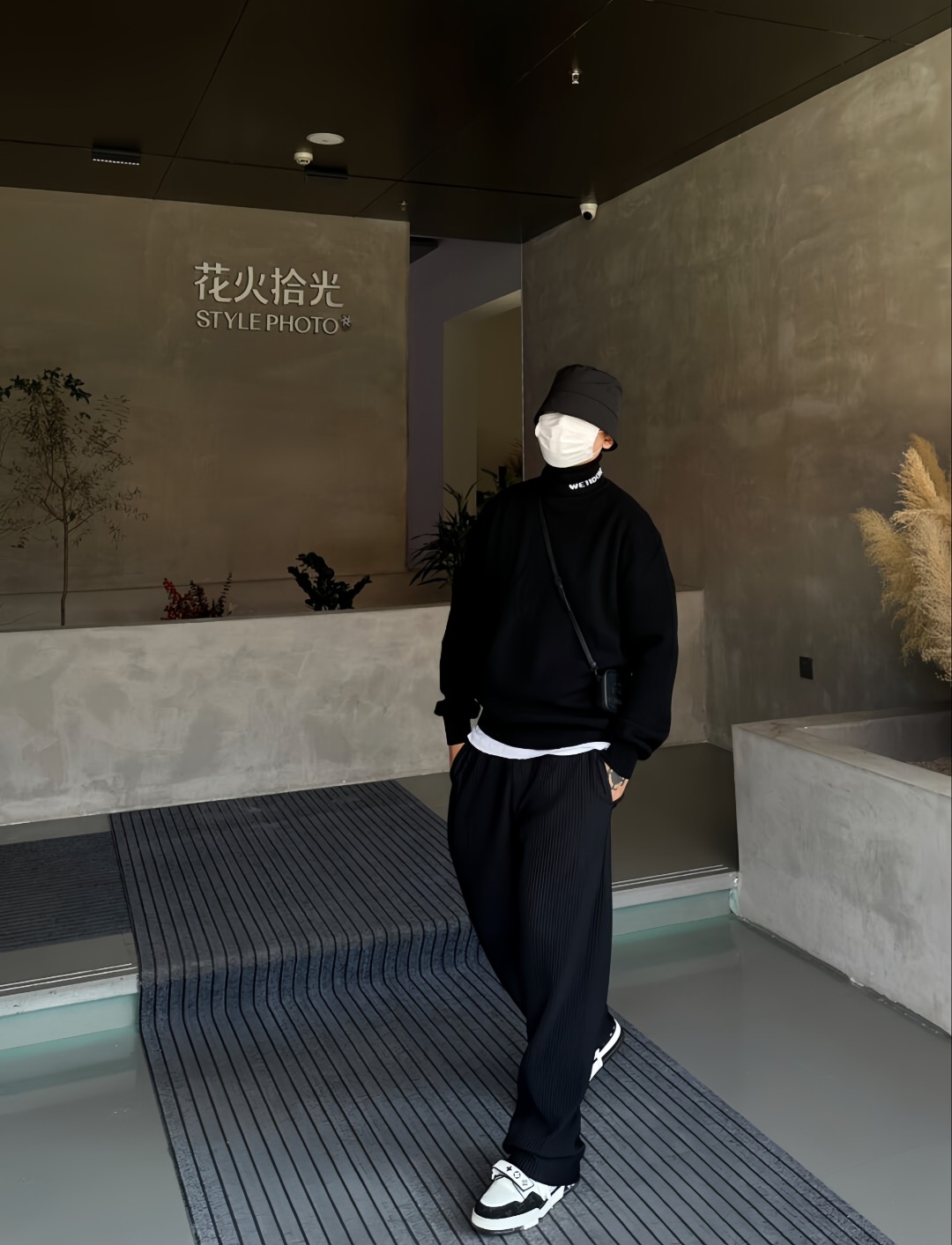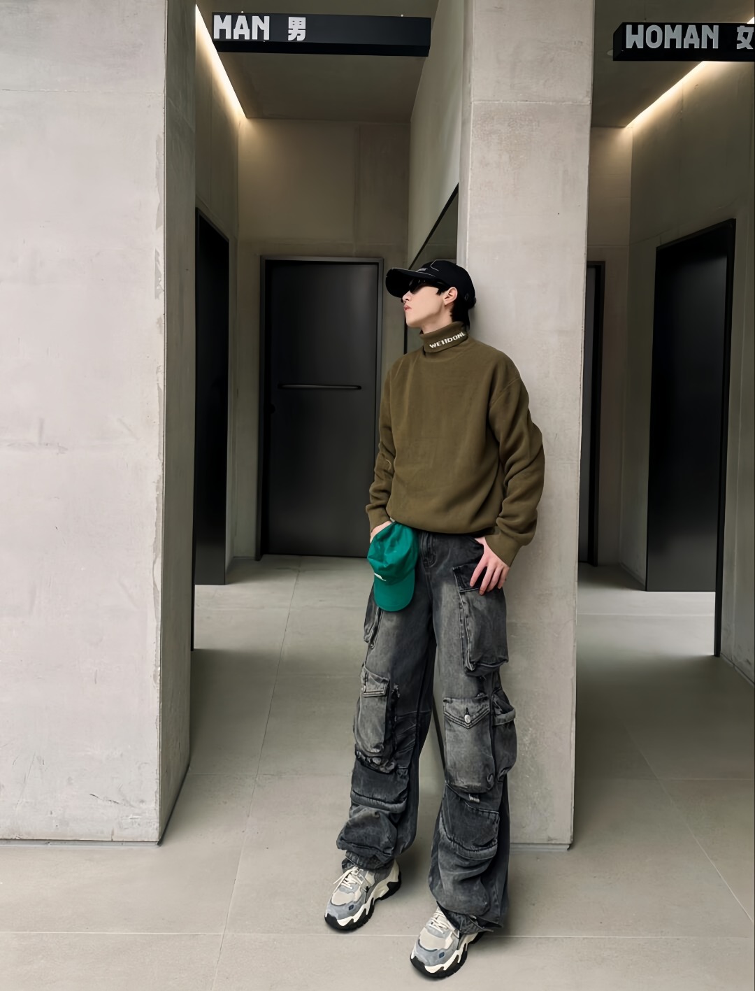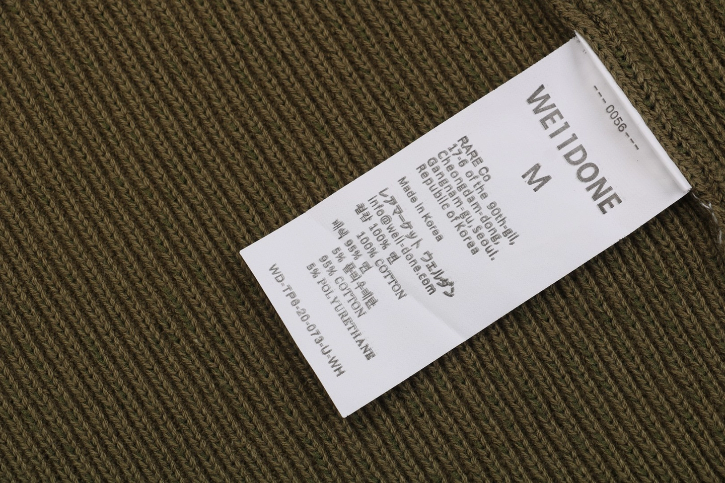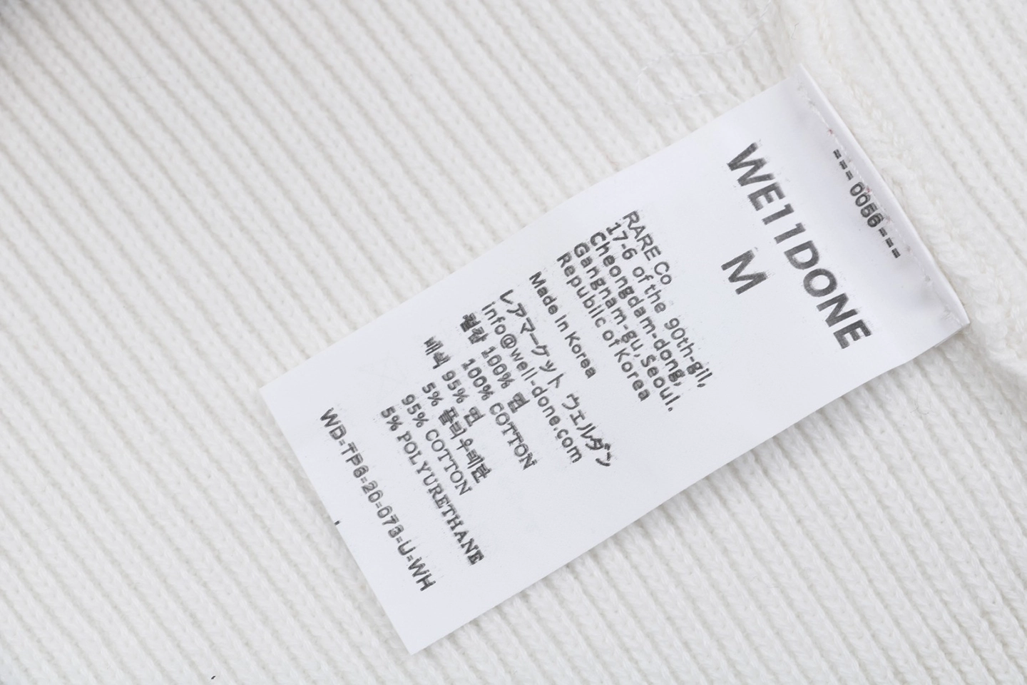 The folded turtleneck is subtly detailed with a small “WE / WE11DONE” embroidered logo, adding understated identity.