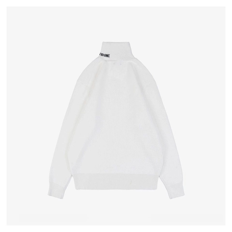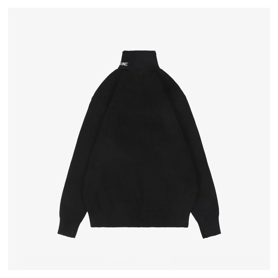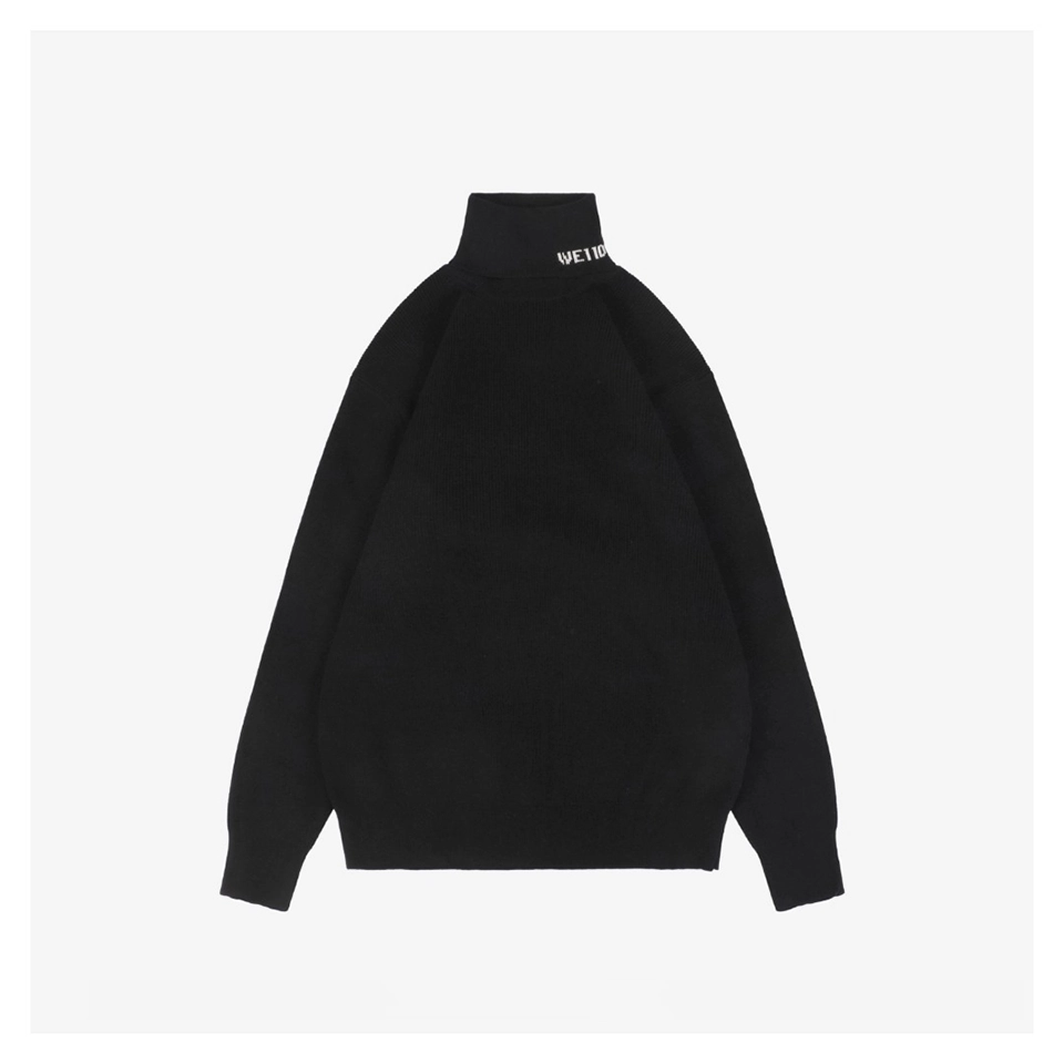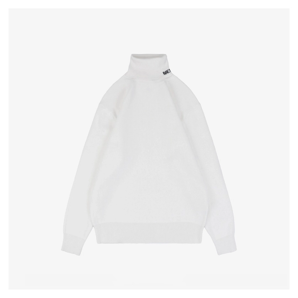 The We11done Small WE Logo High-Neck Knit Sweater features the brand’s signature minimalistic aesthetic, presented in clean monochrome tones with a soft and cozy knit texture.