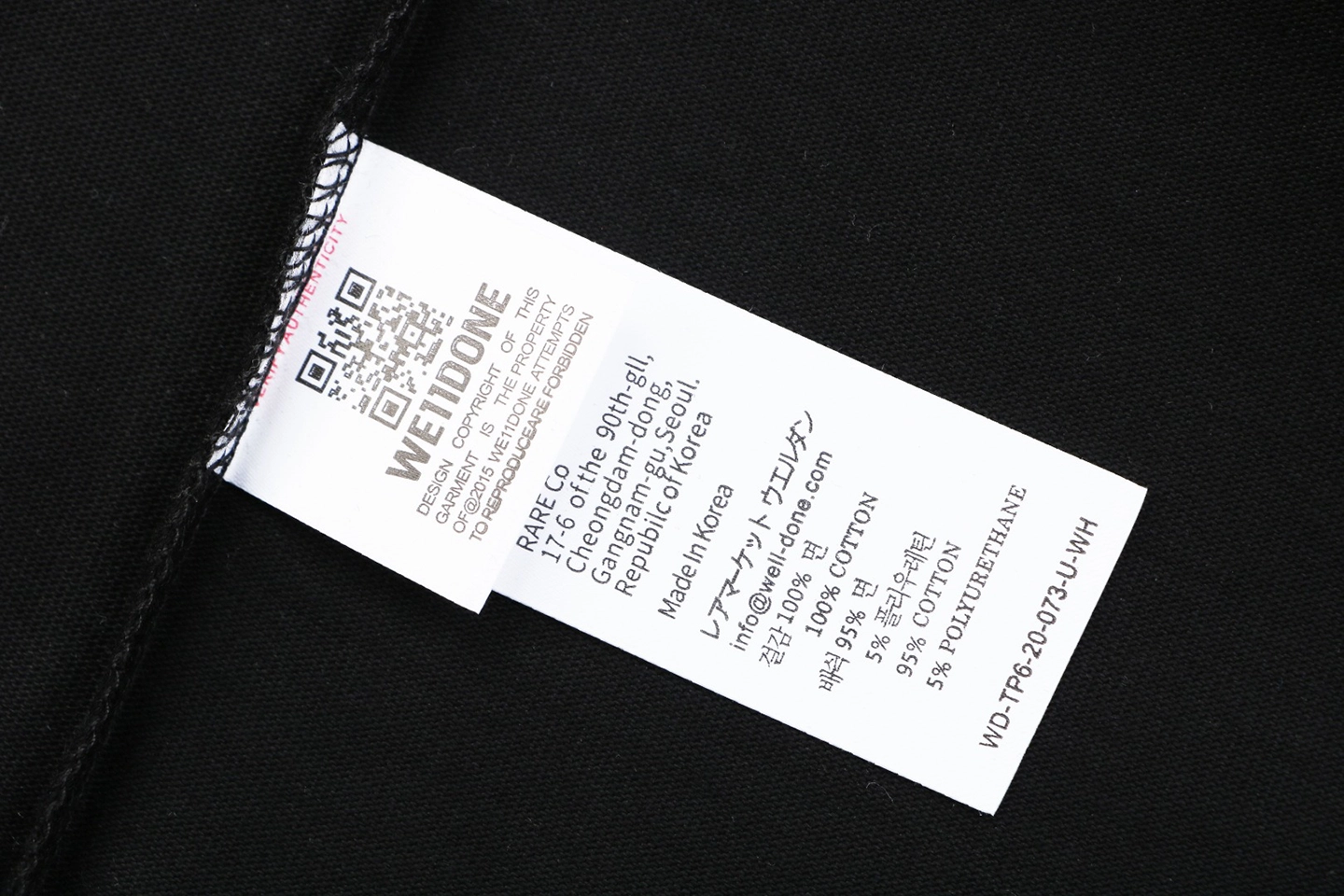The body fabric, collar, and sleeve ribbing are dyed in the same batch, ensuring a consistent and even tone across the garment. Finished with custom branded labels and trims, the piece stays true to the signature detailing associated with We11done.