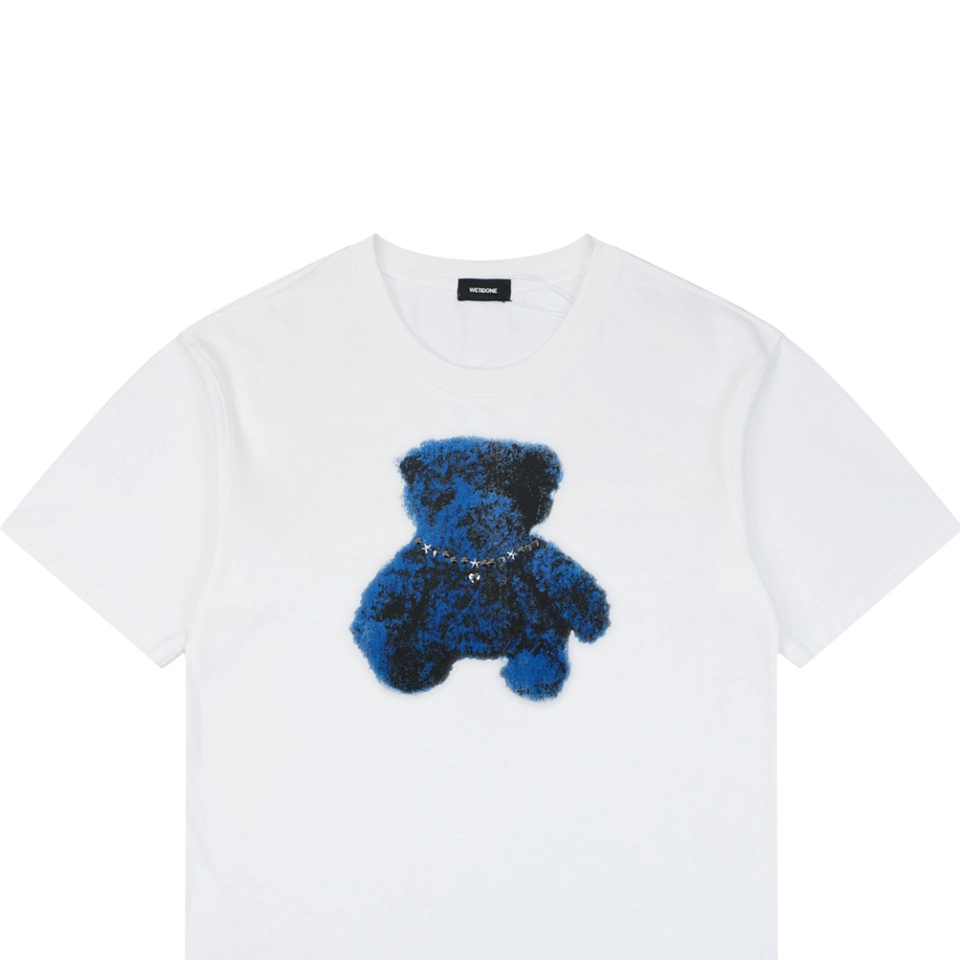 The We11done Teddy Bear Graphic T-Shirt blends playful streetwear aesthetics with premium craftsmanship. Made from custom-woven and dyed 280g heavyweight cotton, the fabric offers a substantial feel with a soft, flexible touch while maintaining a structured silhouette that resists deformation. The heavier weight also provides excellent drape, giving the T-shirt a clean and elevated look.