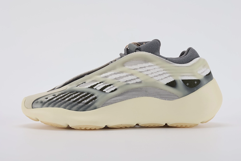 The adidas Yeezy 700 V3 ‘Fade Salt’ dresses the chunky silhouette in a wholly neutral palette, highlighted by an engineered mesh upper in a complementary blend of white, black and grey.