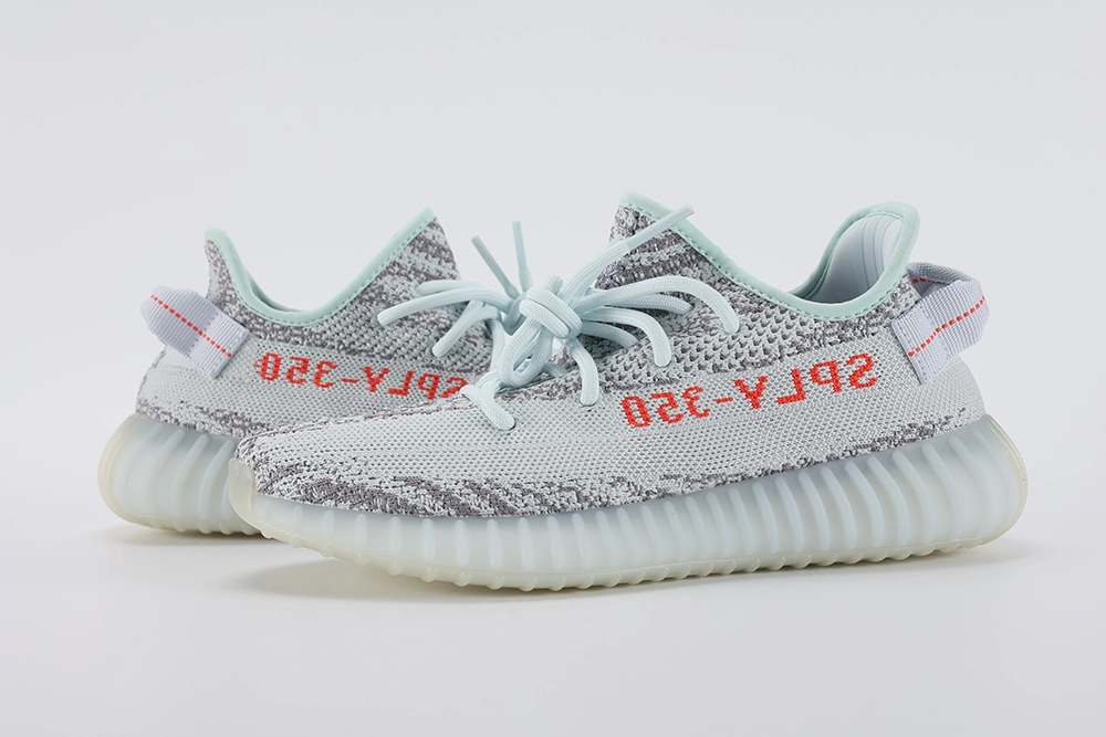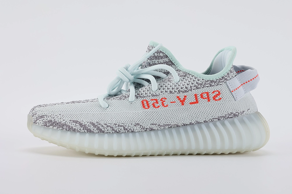 The Yeezy Boost 350 V2 ‘Blue Tint’ is a testament to the enduring collaboration between Kanye West and Adidas, offering a fresh and invigorating take on the iconic sneaker line. This particular model captivates with its ‘Blue Tint’ colorway, a serene and subtle blend of light blues and greys, accented with a striking red “SPLY-350” branding on the side. The color palette evokes a wintry, frostbitten aesthetic, making it a unique and visually appealing addition to any sneaker collection.