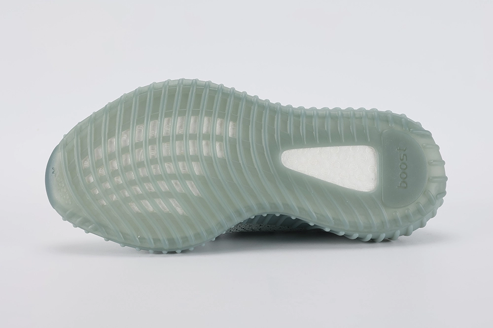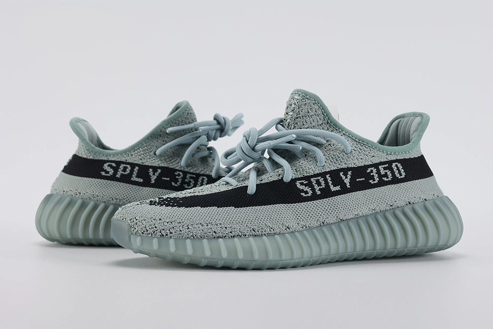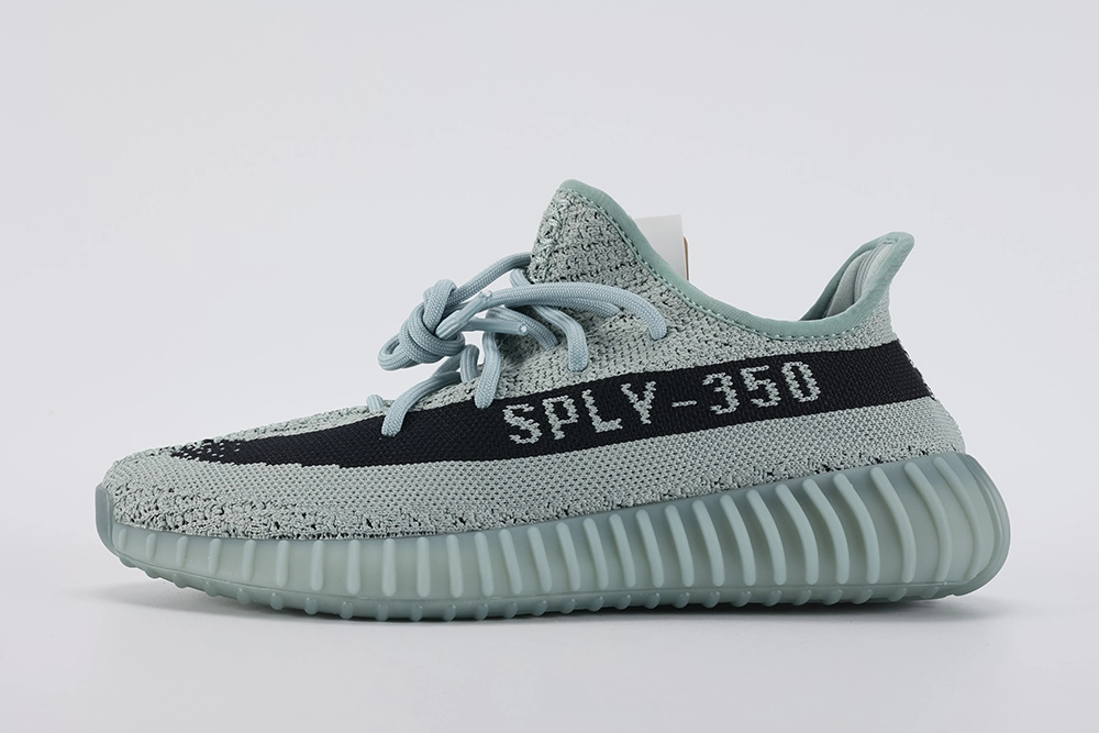 The adidas Yeezy Boost 350 V2 ‘Salt’, also referred to as ‘Jade Ash’, updates the lifestyle silhouette with a cooling color palette. Rope laces secure the mint green Primeknit upper, featuring distinctive center-stitch detailing down the vamp. A contrasting streak of black adorns the lateral side, complete with signature SPLY-350 branding. Responsive cushioning arrives via a full-length Boost midsole, wrapped in a semi-translucent TPU cage and reinforced by a grippy rubber outsole.