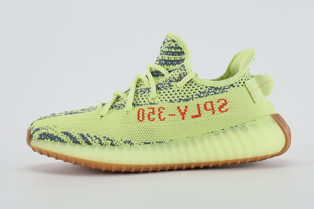 The Yeezy Boost 350 V2 ‘Semi Frozen Yellow’ is one of the most vibrant and eye-catching releases in the Yeezy line. Known colloquially as “Yebra,” this model features a striking bright yellow Primeknit upper, which sets it apart from the more subdued colorways typically associated with Yeezy sneakers.