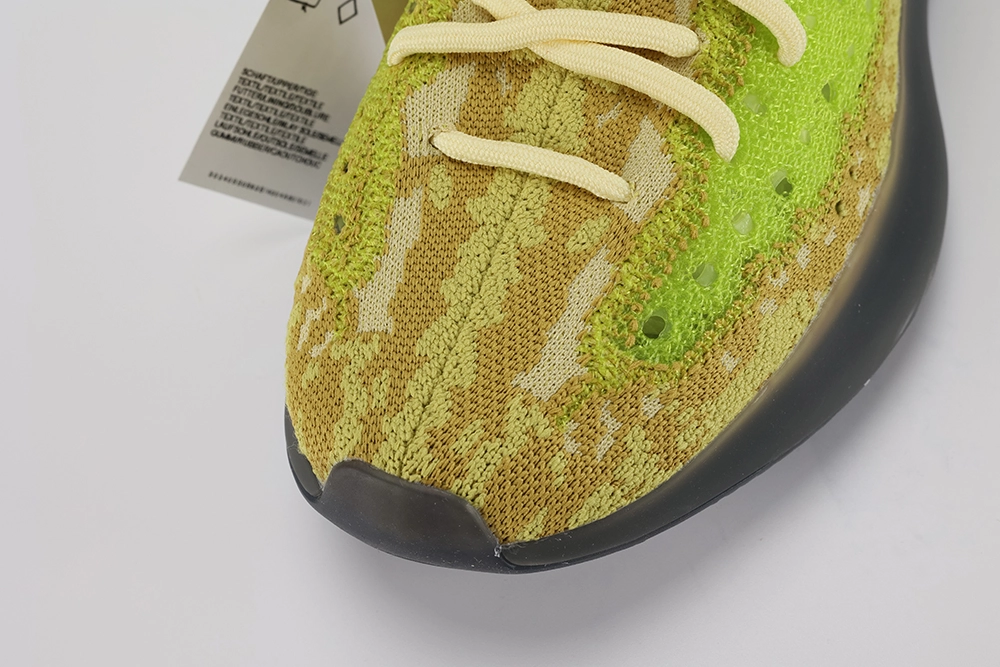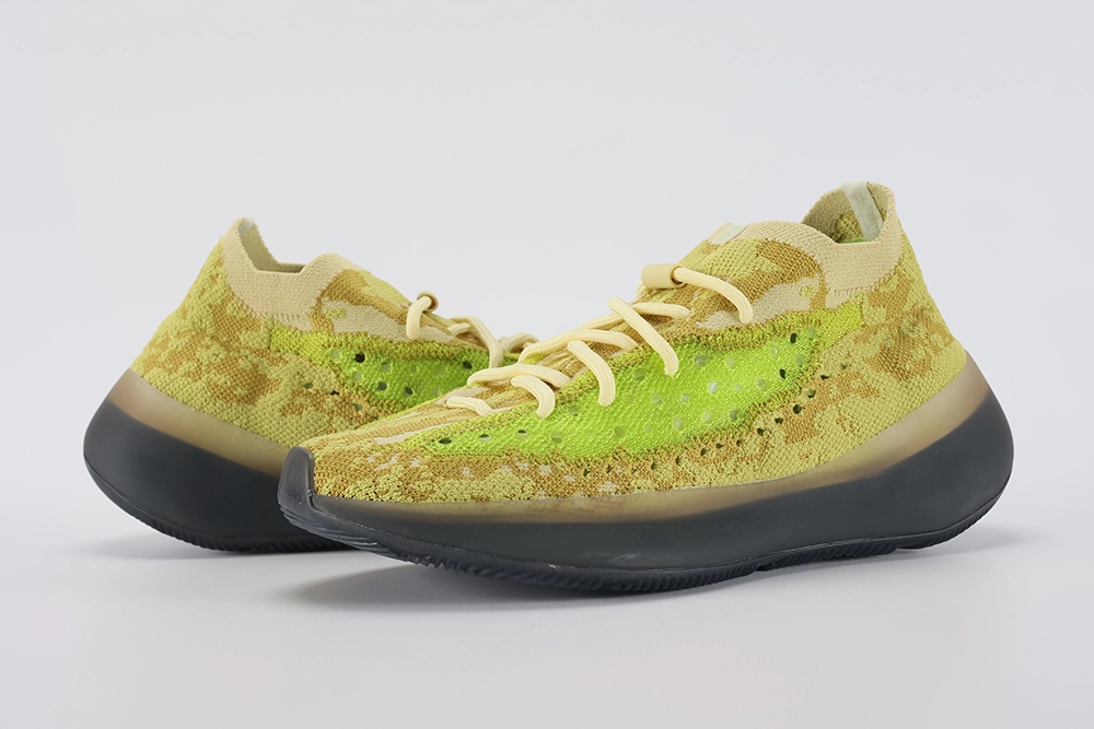 The Yeezy Boost 380 ‘Hylte’ is a bold expression within the Yeezy line, known for its innovative design and striking colorways. This particular model stands out with its vibrant ‘Hylte’ color scheme, featuring a fluorescent yellow-green upper that commands attention. The Primeknit material offers a snug, breathable fit, adapting to the foot’s shape for enhanced comfort and support. This sneaker also introduces intricate detailing with gray and light green accents woven throughout, adding depth and texture to the design.