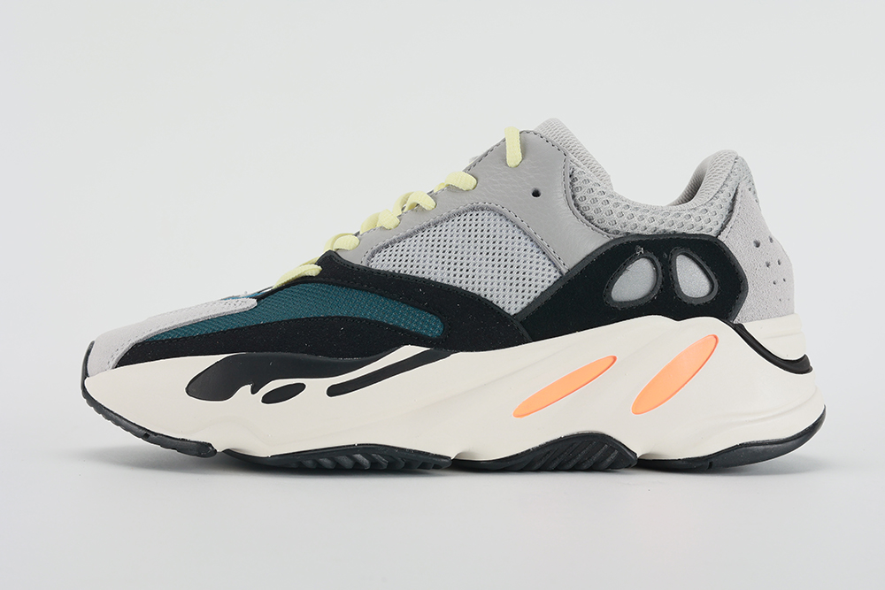 The Yeezy Boost 700 Wave Runner is a beacon of bold design and comfort in the sneaker world, marking a pivotal moment in the evolution of athletic footwear. This model, a hallmark of the collaboration between Kanye West and Adidas, defies conventional design norms with its chunky silhouette and vibrant color palette, setting a new trend in the “dad shoe” movement. The Wave Runner combines shades of gray with black, blue, and green highlights, accented by bold orange dashes on the midsole, creating a visually striking contrast that captivates and intrigues.