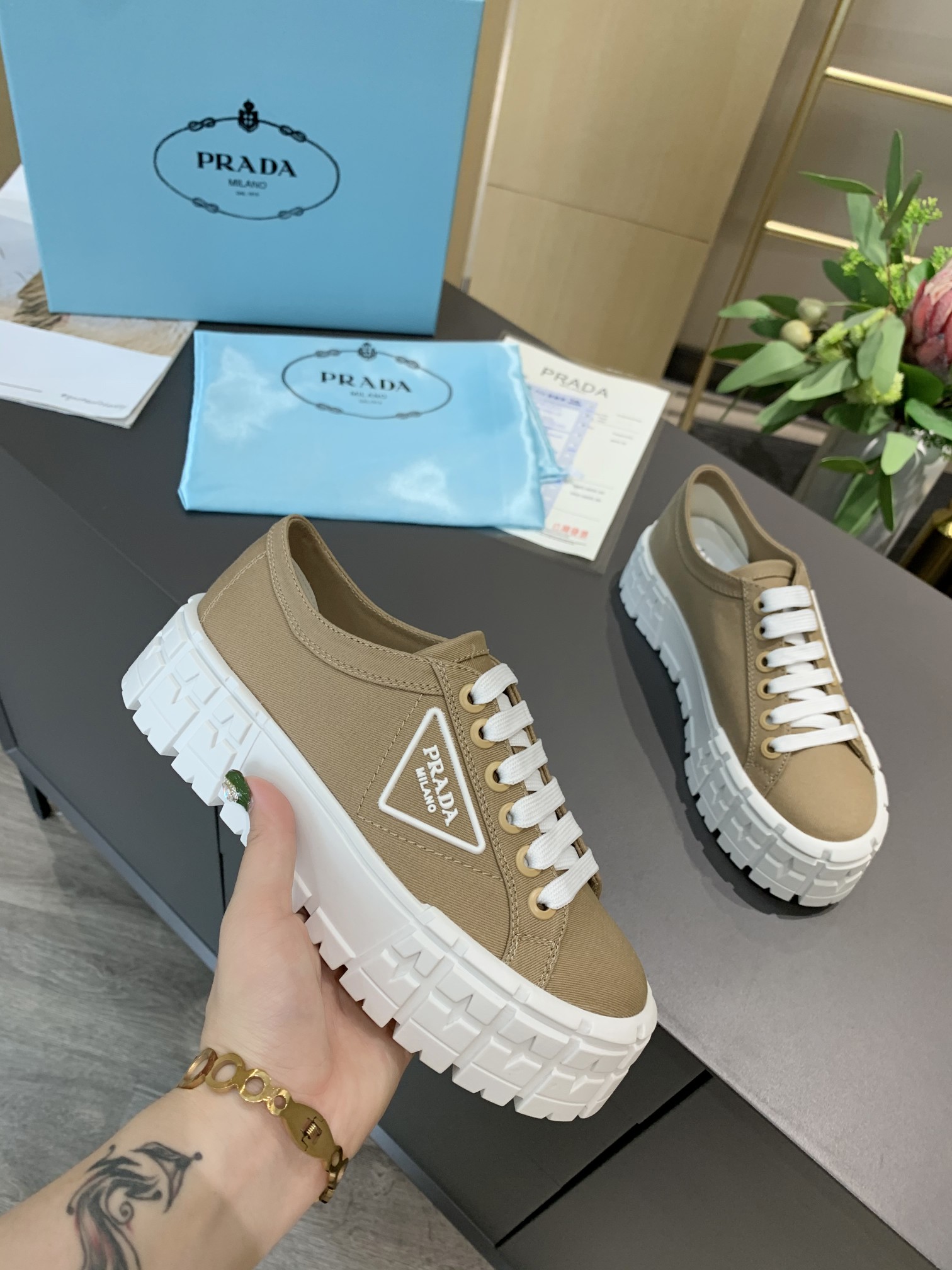 Be the first to review “Prada Double Wheel Nylon Gabardine Sneakers-0005 35-41” Cancel reply