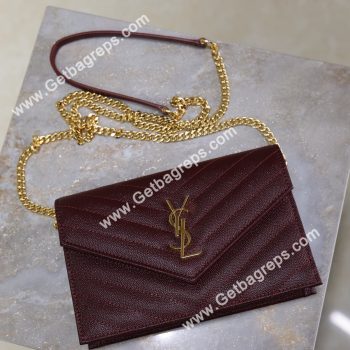 YSL Monogram Large Wallet on Chain in Grained Leather Wine 22cm