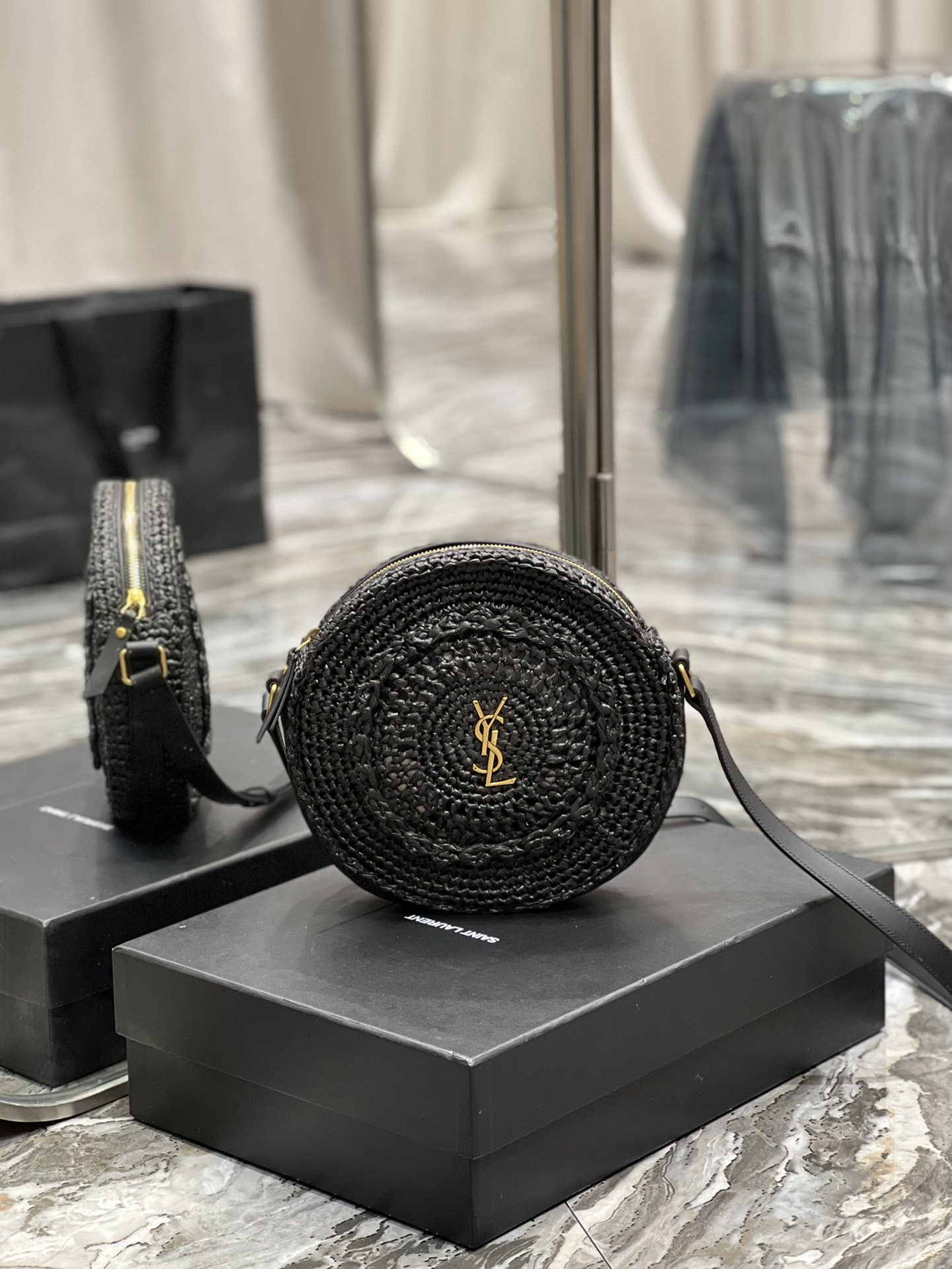 Yves Saint Laurent Round Camera Bag in Raffia Black